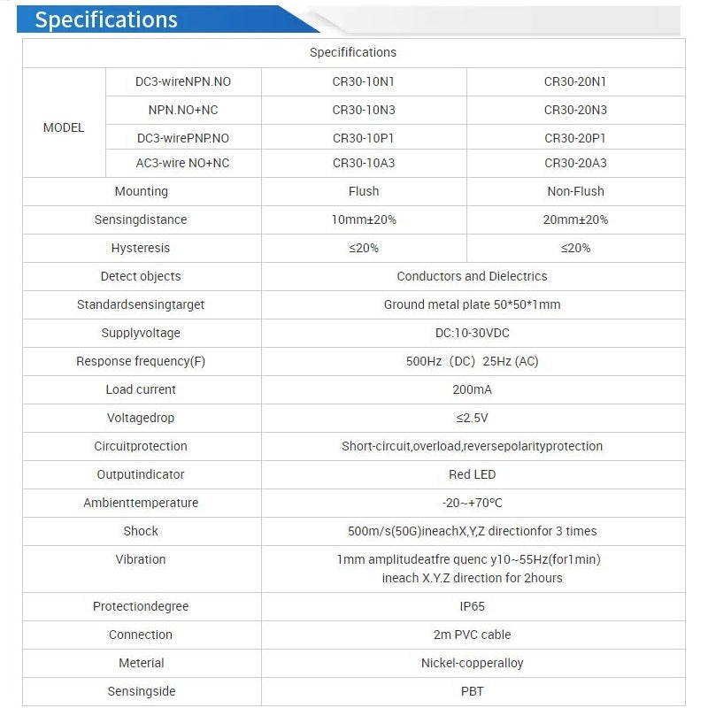 | Supply Voltage: | 10-30VDC 3 Wires |
