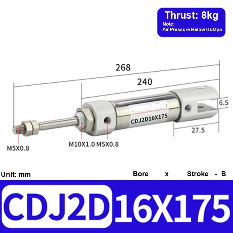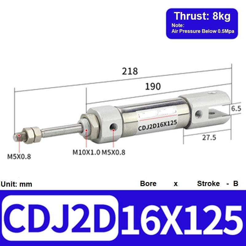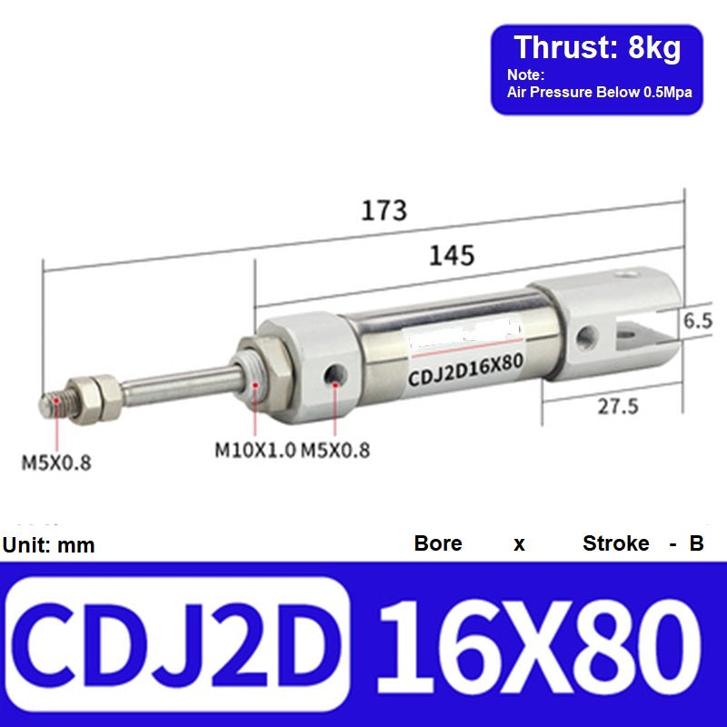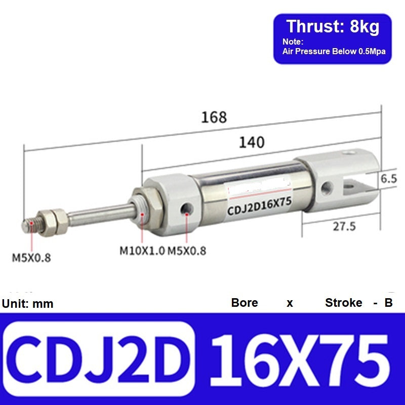CDJ2D Bore16mm10-B پۆڵا ستانلێس PB سلندەر دوو کردار تاکە ڕۆد سلندەر
