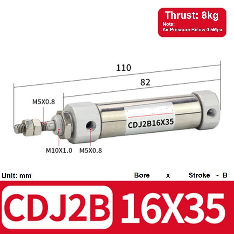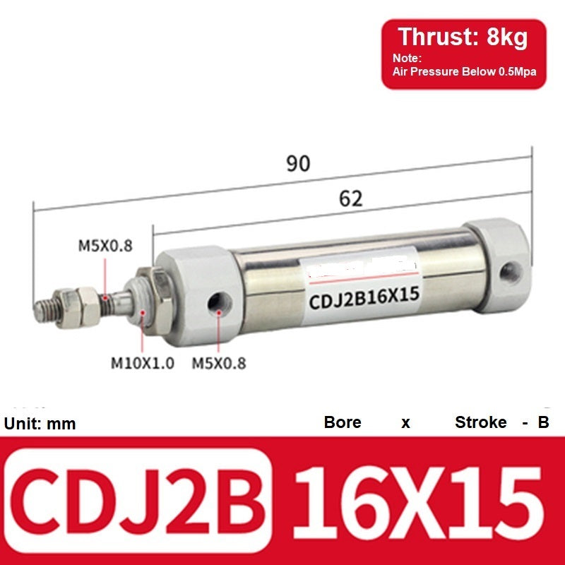 CDJ2B Bore16mm10-B سلندەری PB پۆڵا ستانلێس دوو کردار سلندەری تاک ڕۆد