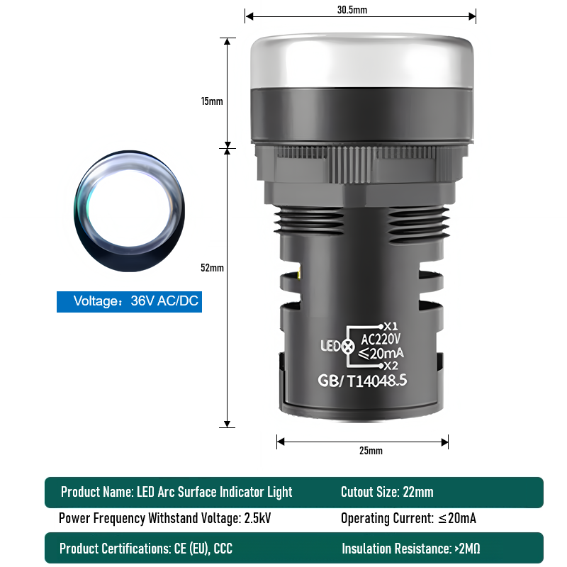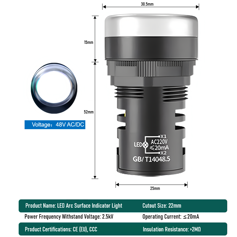 | Color: | Red/Green/Yellow/White LED (multi-color for status indication) |