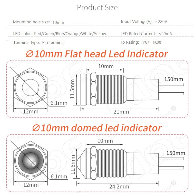 | قەبارەی کونە جێگیرکردن: | چرای سیگناڵی led 220v گڵۆپی led سوور 6mm نیشاندەر ڕووناکی چرای فڕۆکەوان |