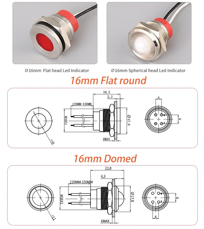 | قەبارەی کونە جێگیرکردن: | چرای سیگناڵی led 220v گڵۆپی led سوور 6mm نیشاندەر ڕووناکی چرای فڕۆکەوان |