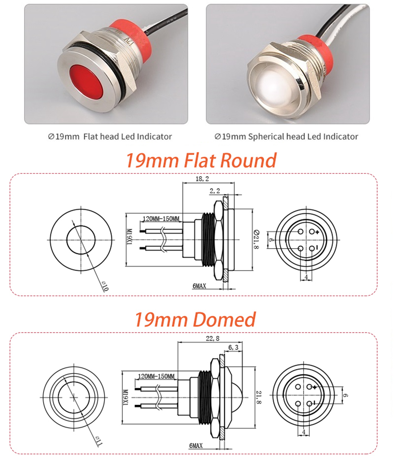 | قەبارەی کونە جێگیرکردن: | چرای سیگناڵی led 220v گڵۆپی led سوور 6mm نیشاندەر ڕووناکی چرای فڕۆکەوان |