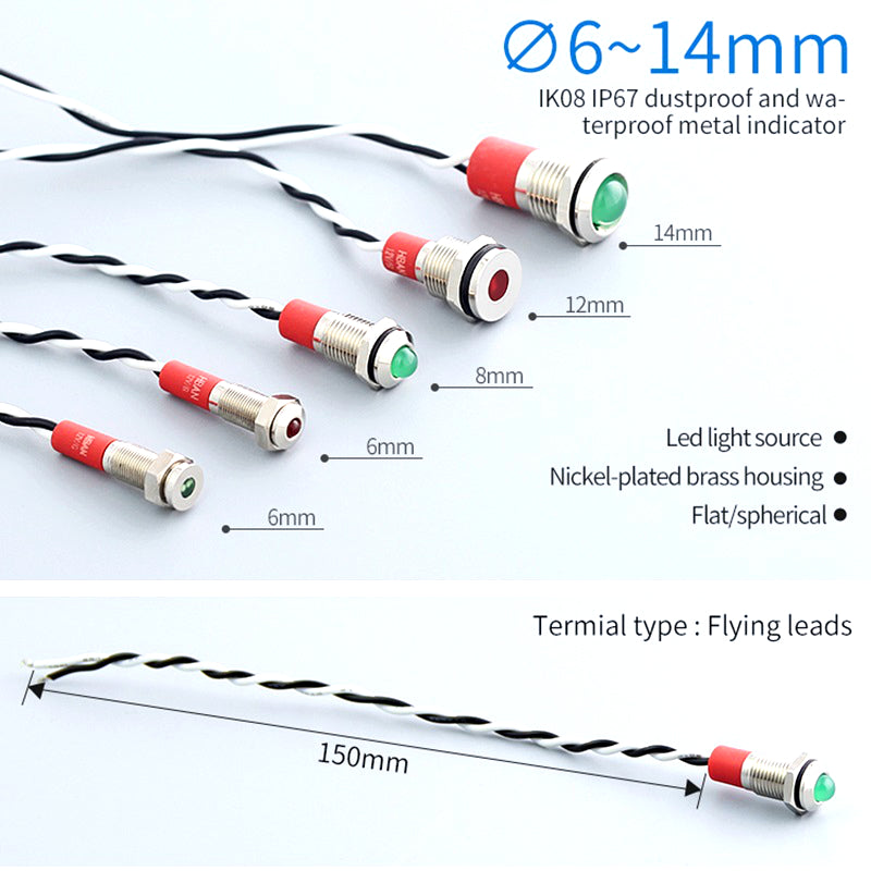| قەبارەی کونە جێگیرکردن: | چرای سیگناڵی led 220v گڵۆپی led سوور 6mm نیشاندەر ڕووناکی چرای فڕۆکەوان |