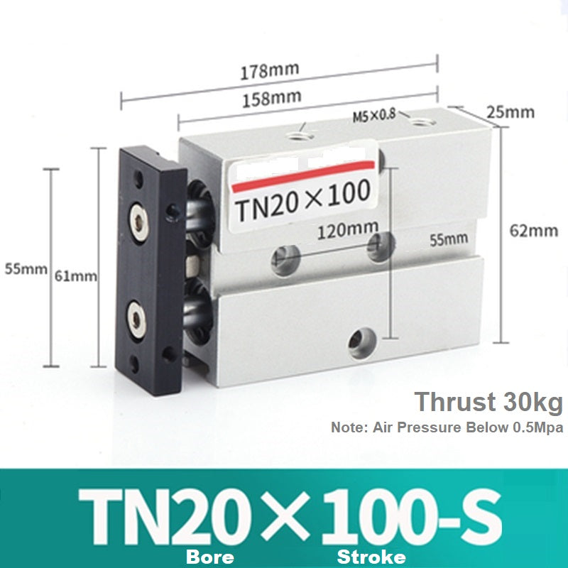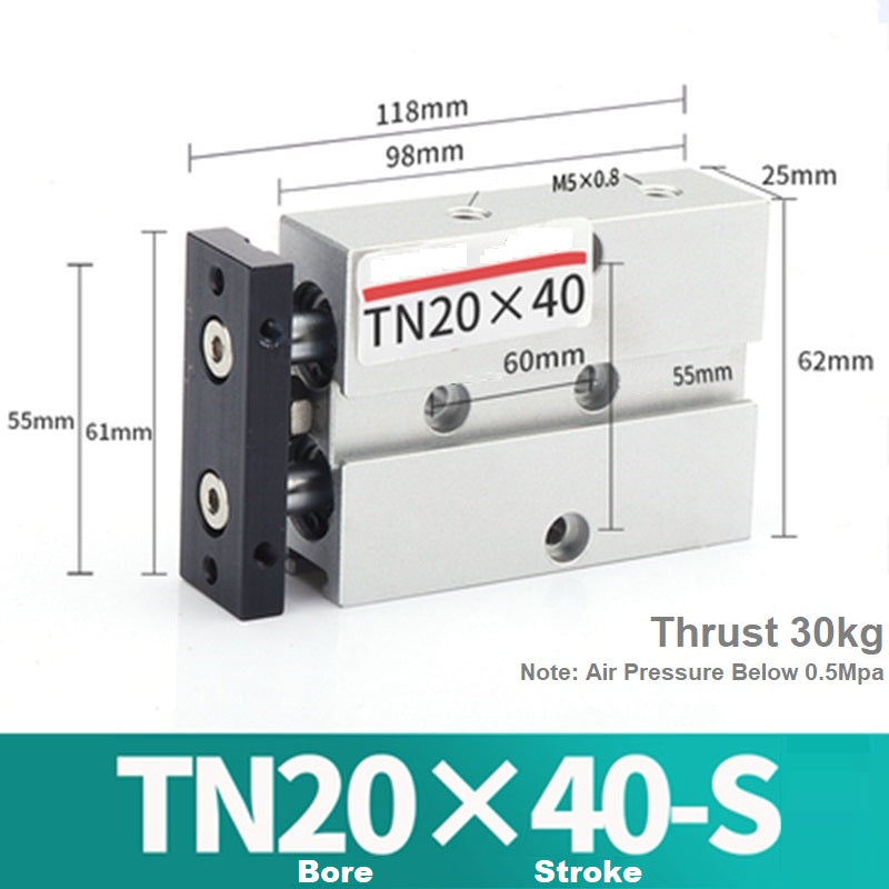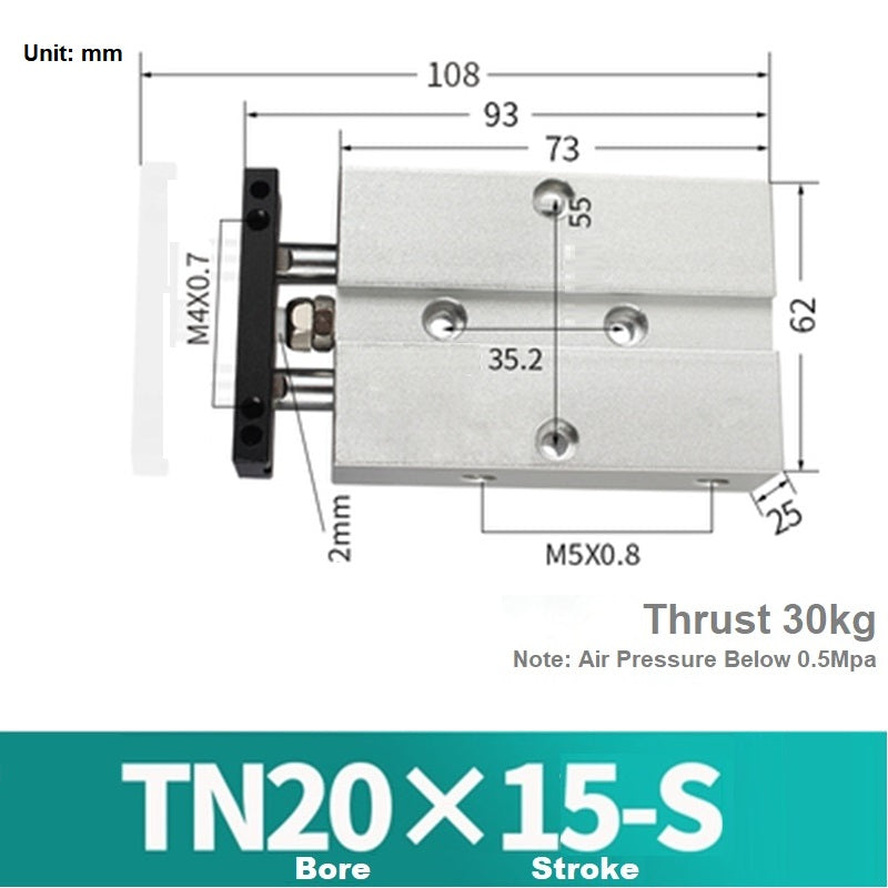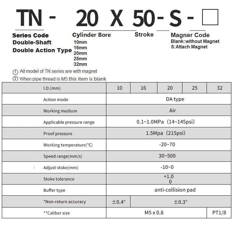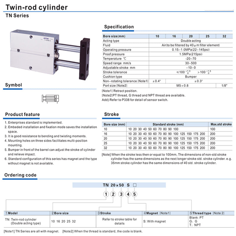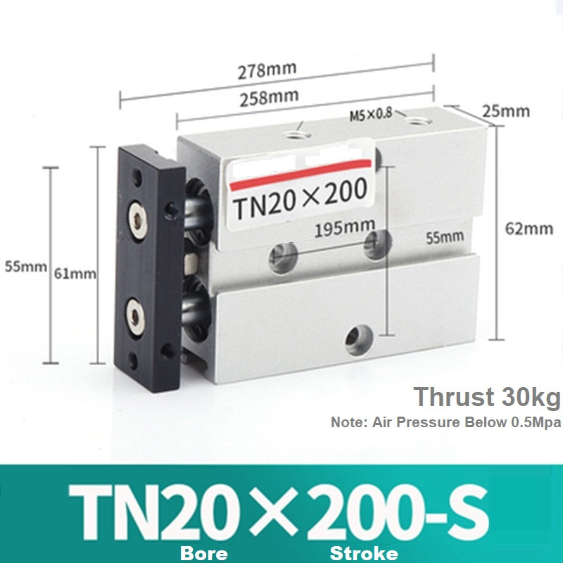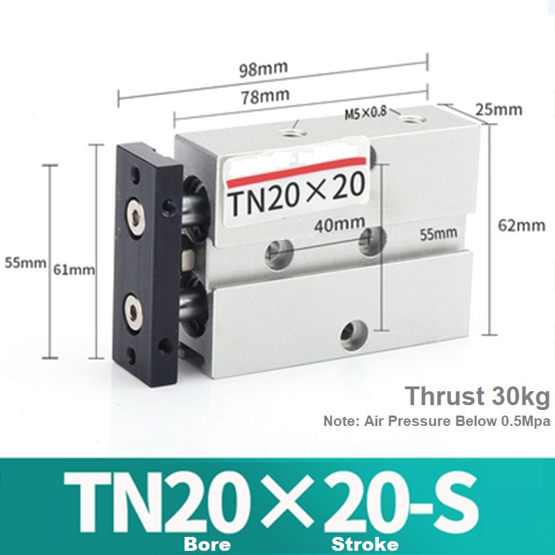 TN20 سلندەری دووانە-ڕۆد TN دوو کارگێڕی بۆری 20mm زەربە 200mm موگناتیسی سلندەری هەوا