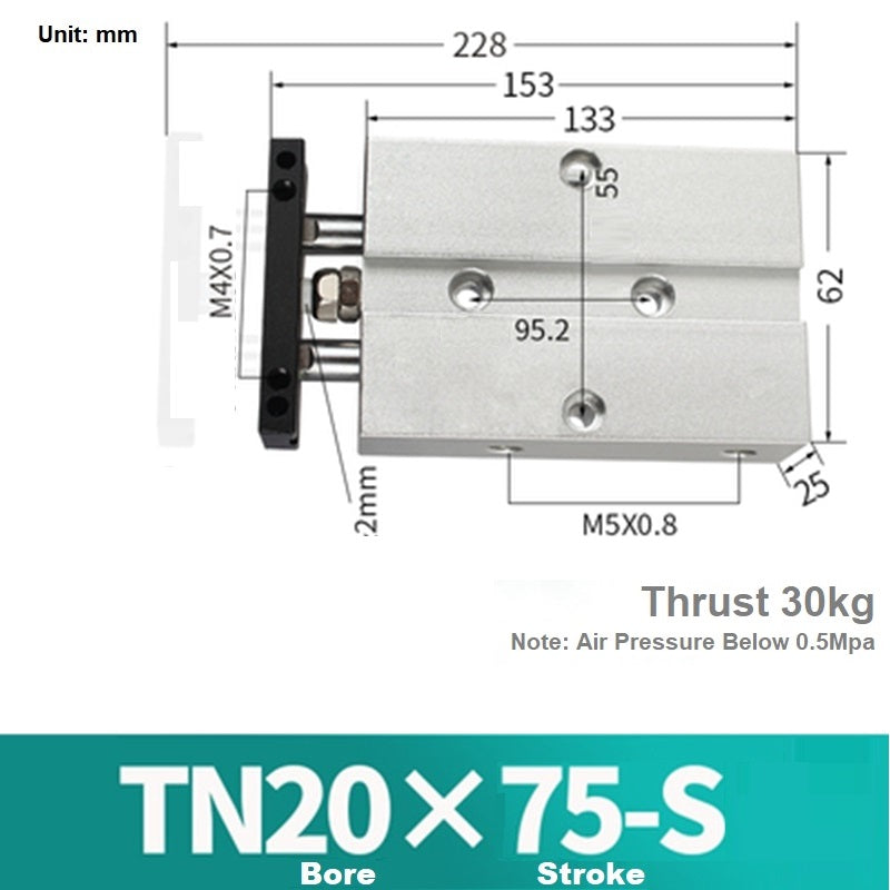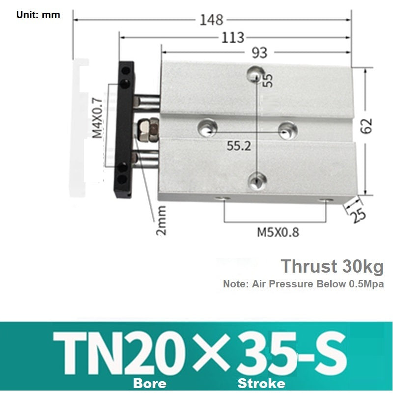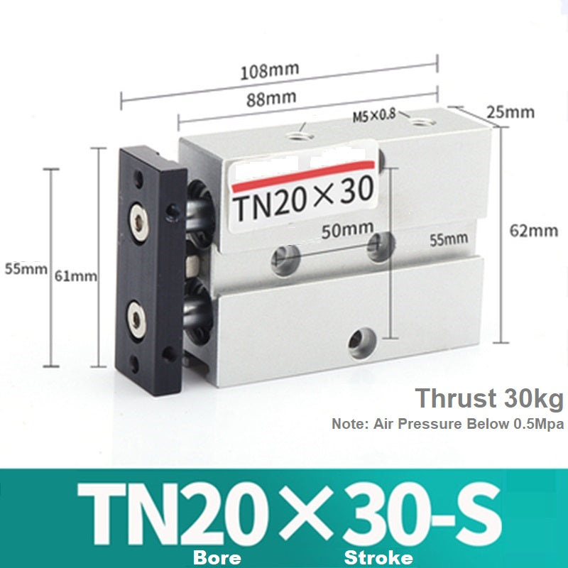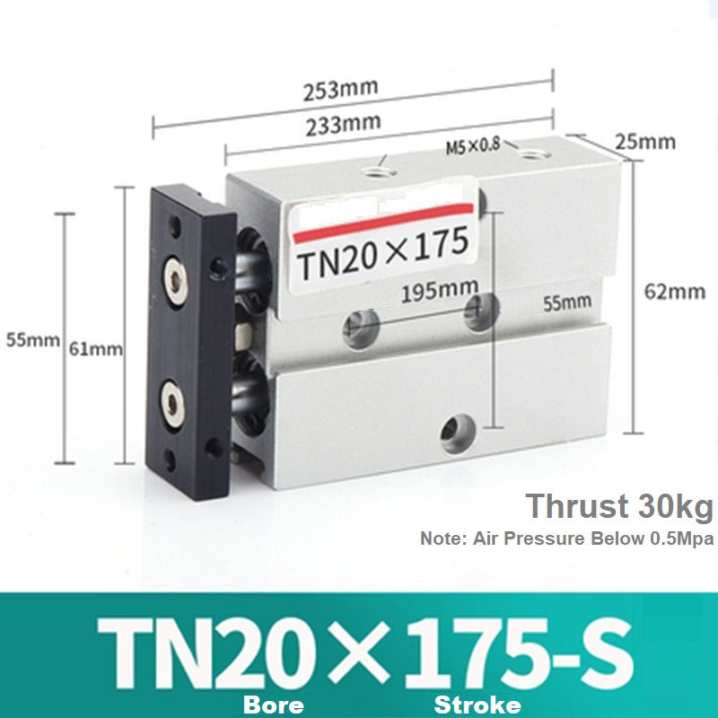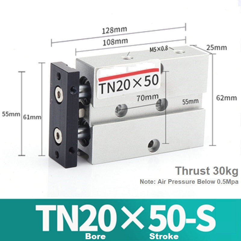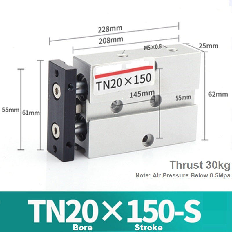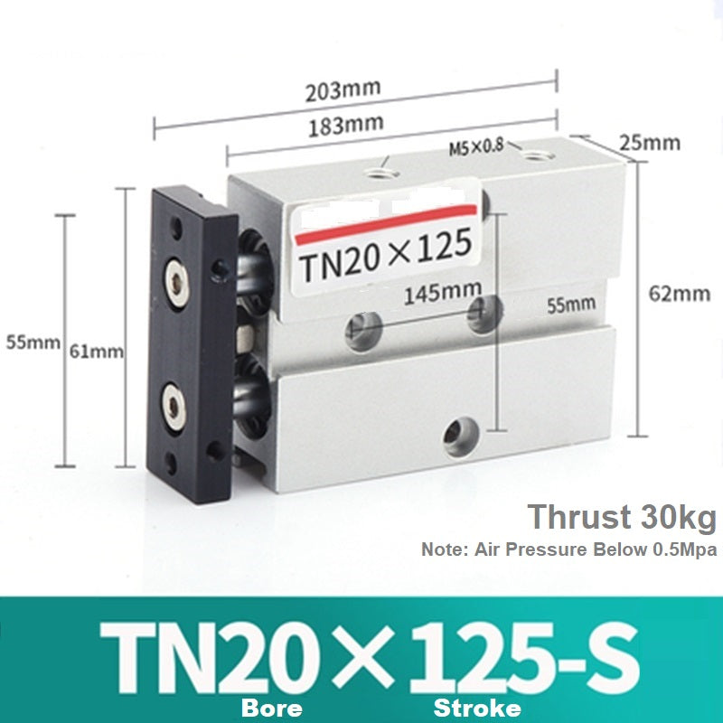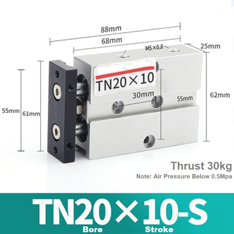 TN20 سلندەری دووانە-ڕۆد TN دوو کارگێڕی بۆری 20mm زەربە 200mm موگناتیسی سلندەری هەوا