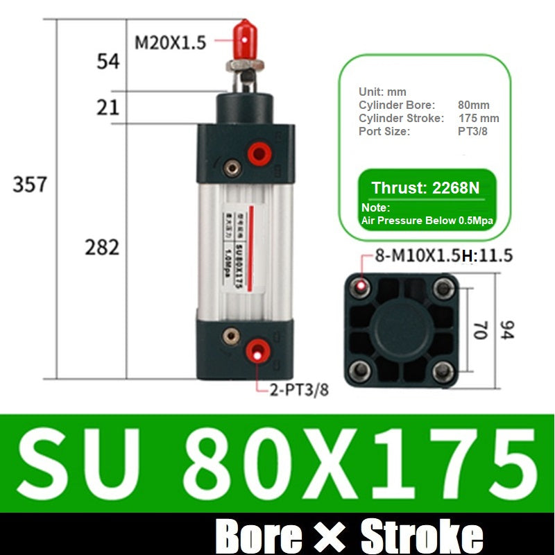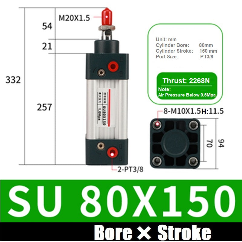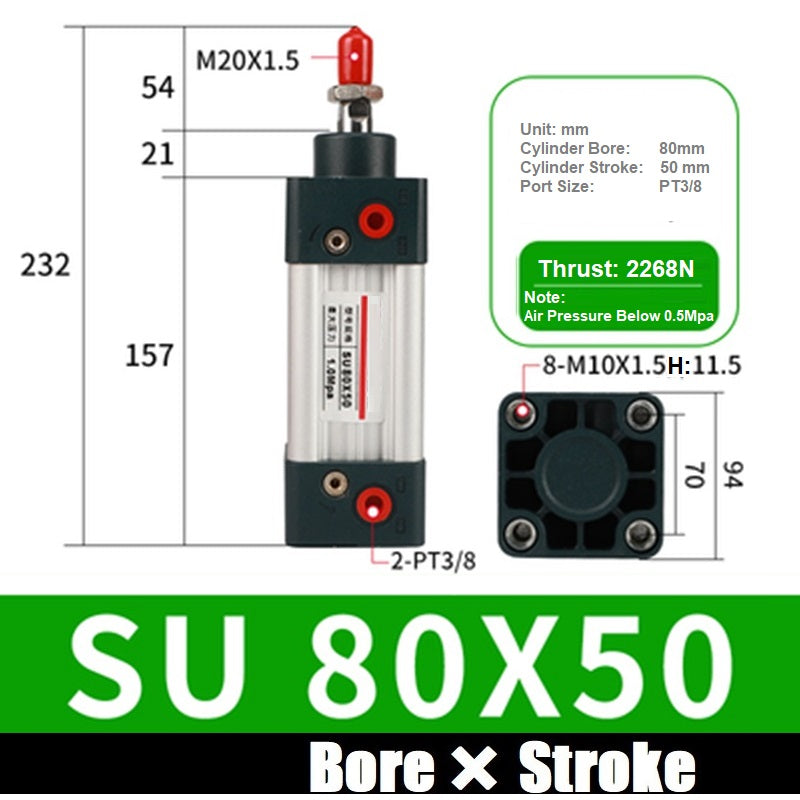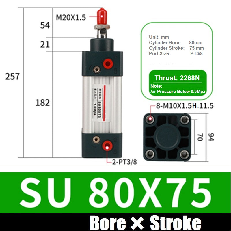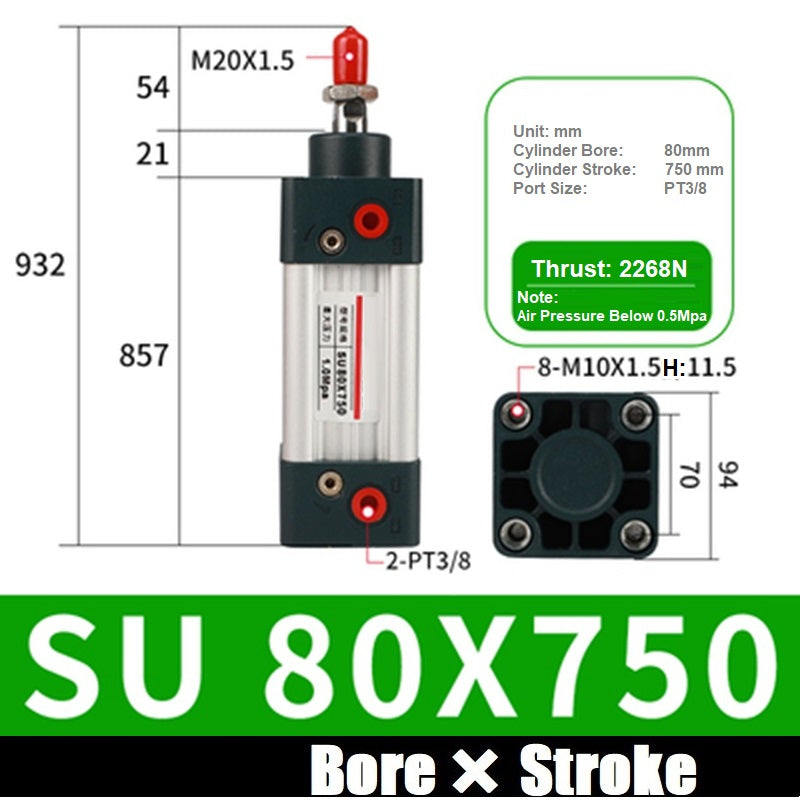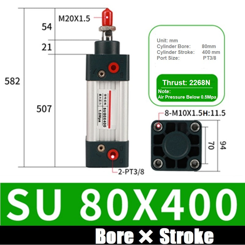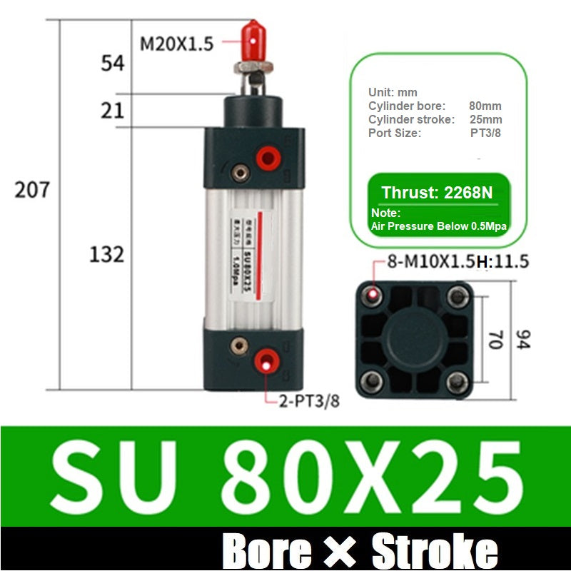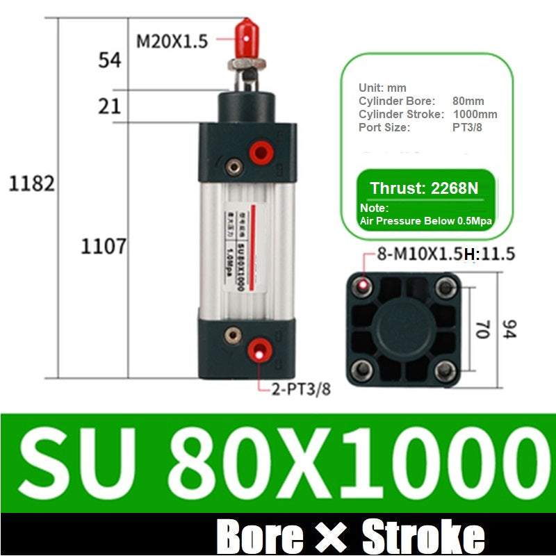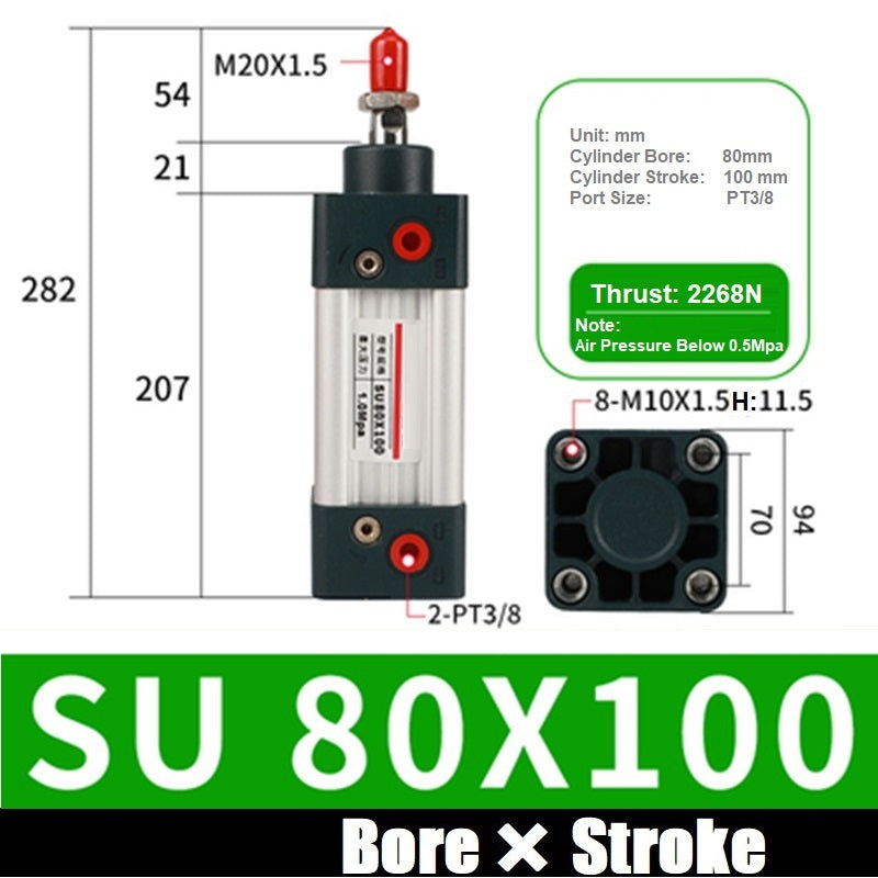 SU 80mm بۆری ناوەوە ڕۆد دوو کردار پستۆنی سلندەری هەوا جەڵتەی مێشک 25mm-1000mm سلندەر