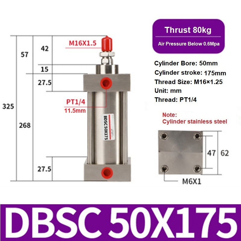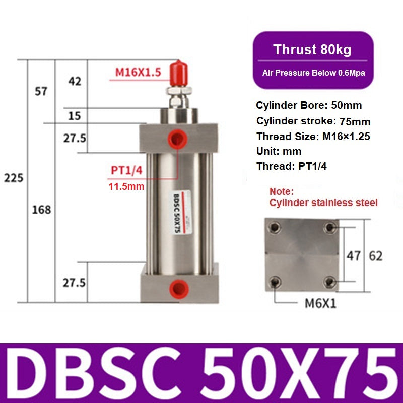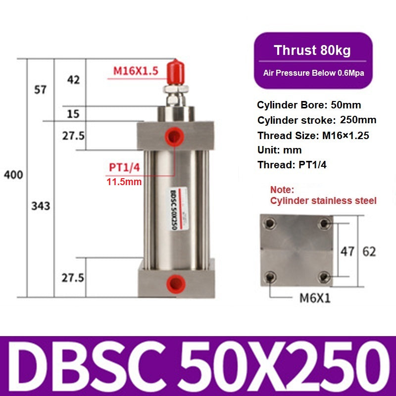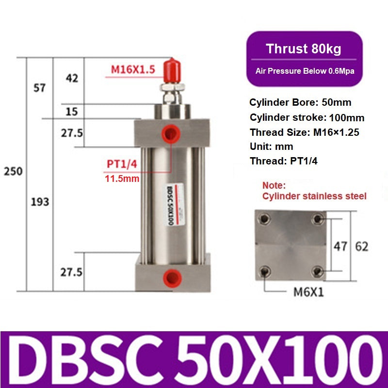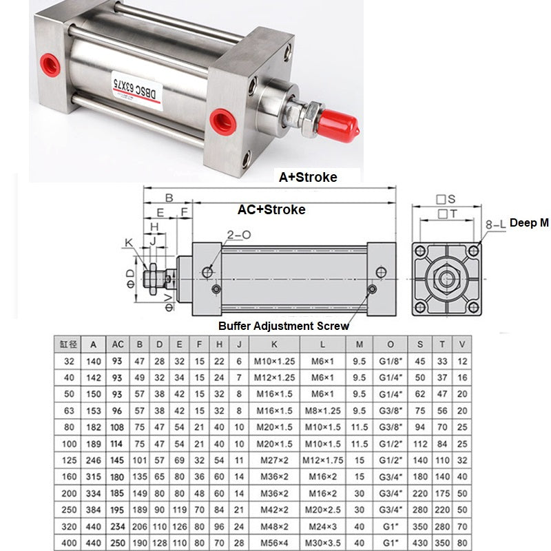 304 پۆڵا SC ستاندارد سلندەر بچووک بای پۆڵا ستانلێس DBSC50-125Series