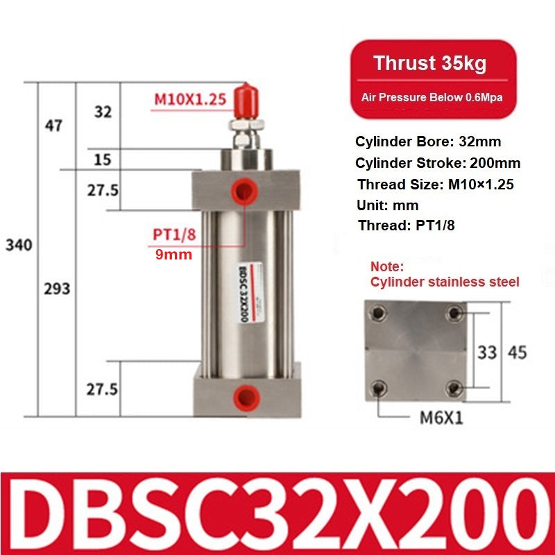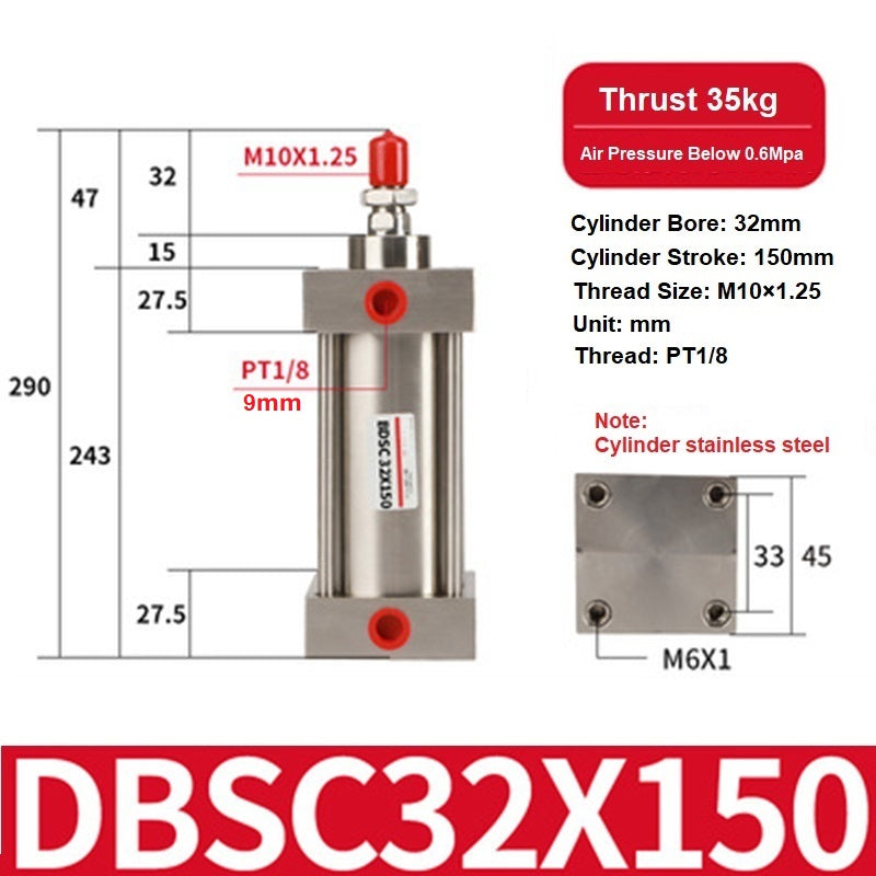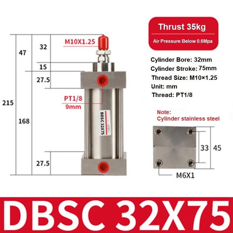 304 پۆڵا SC ستاندارد سلندەر بچووک بای پۆڵا ستانلێس DBSC32-125Series