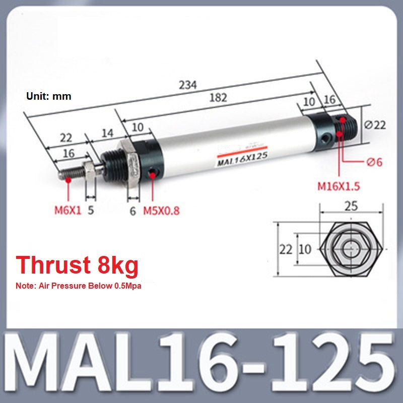 | ناوی بەرهەم: | MAL16 ئالۆوی ئەلەمنیۆم MINI سلندەری هەوا |