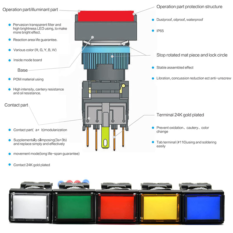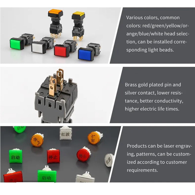 | قەبارەی کونە جێگیرکردن: | سویچی دوگمەی چوارگۆشەی 16mm |