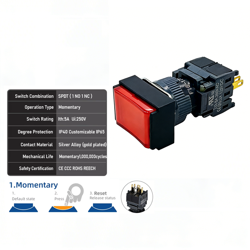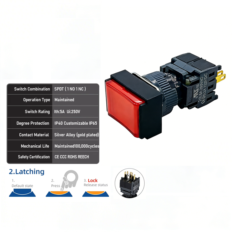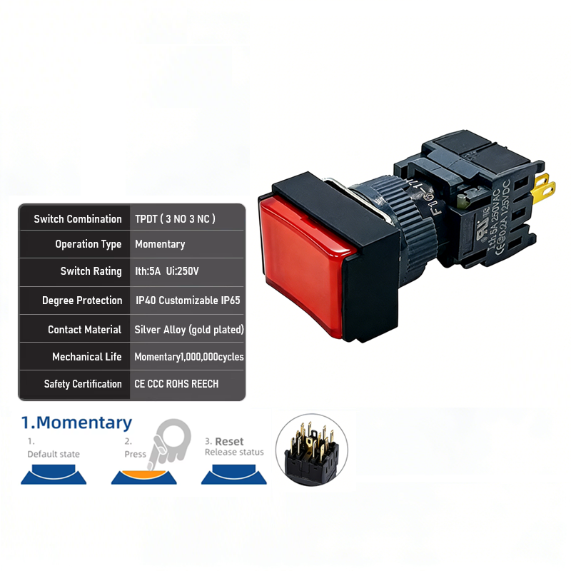 16mm DPDT پارێزراو سویچی دوگمەی پاڵنانی پلاستیکی سوور دەوری (LAS1-BY) CE,ROHS
