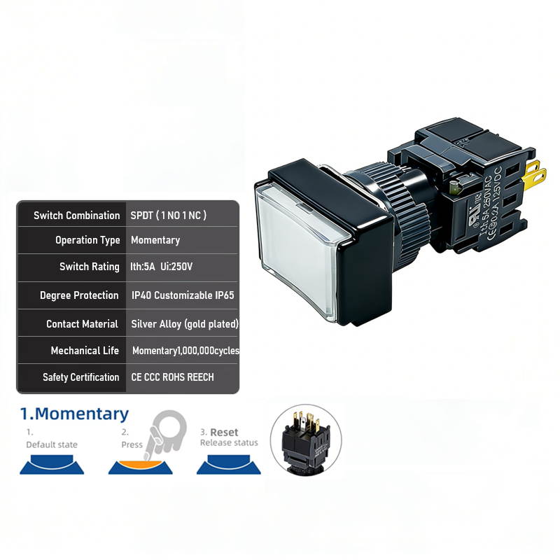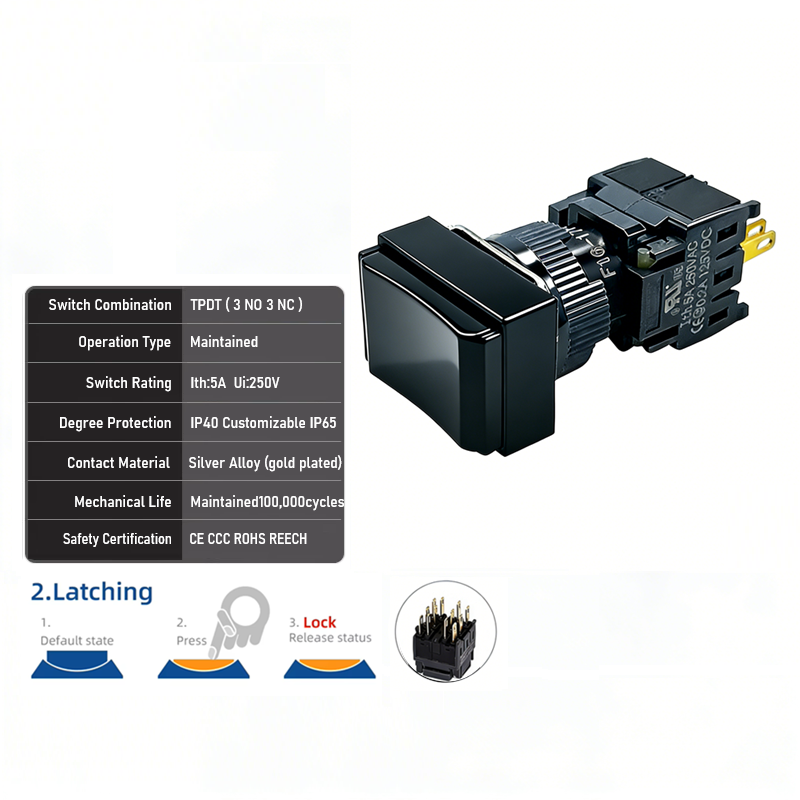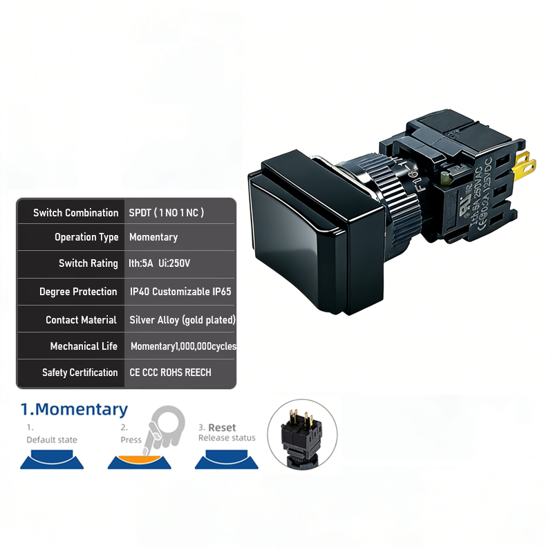قەبارەی کونە جێگیرکردن: سویچی دوگمەی دەوری 16mm