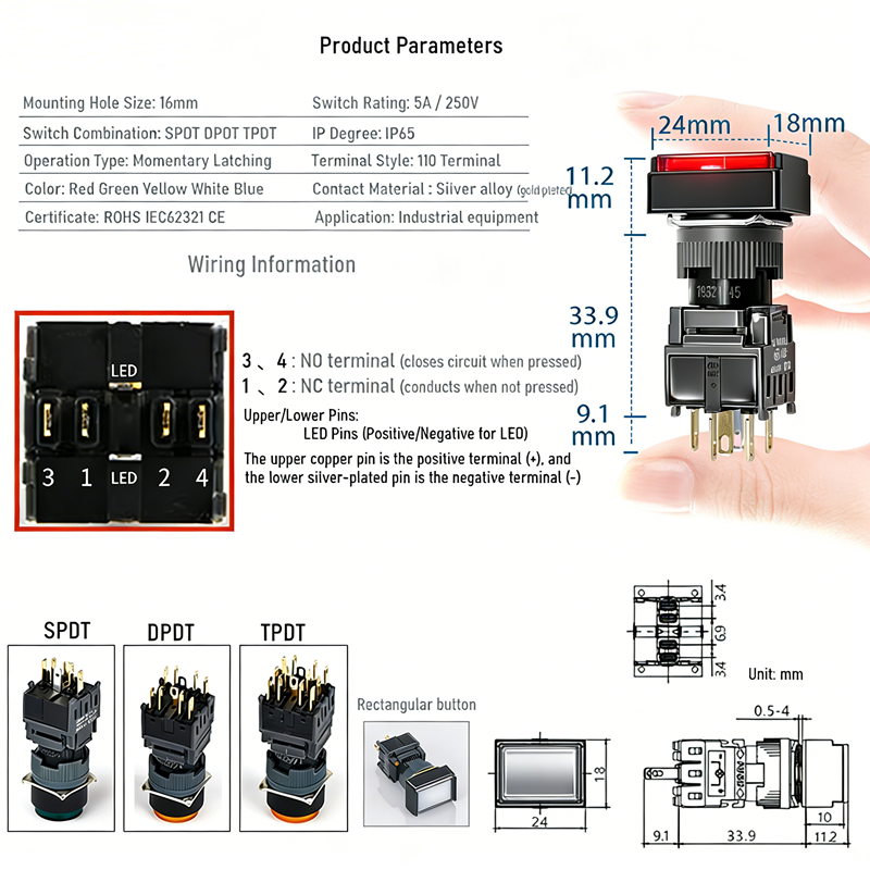 • Type: سویچی دوگمەی دەستپێکردنی پاوەر 16mm