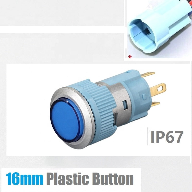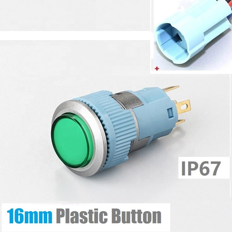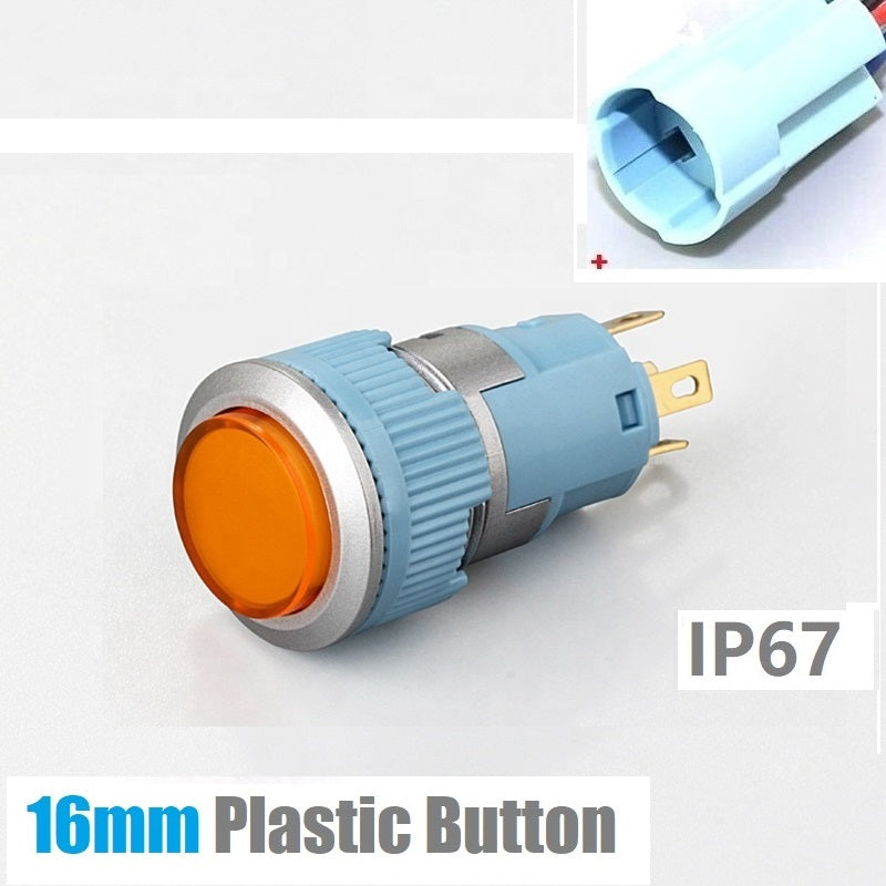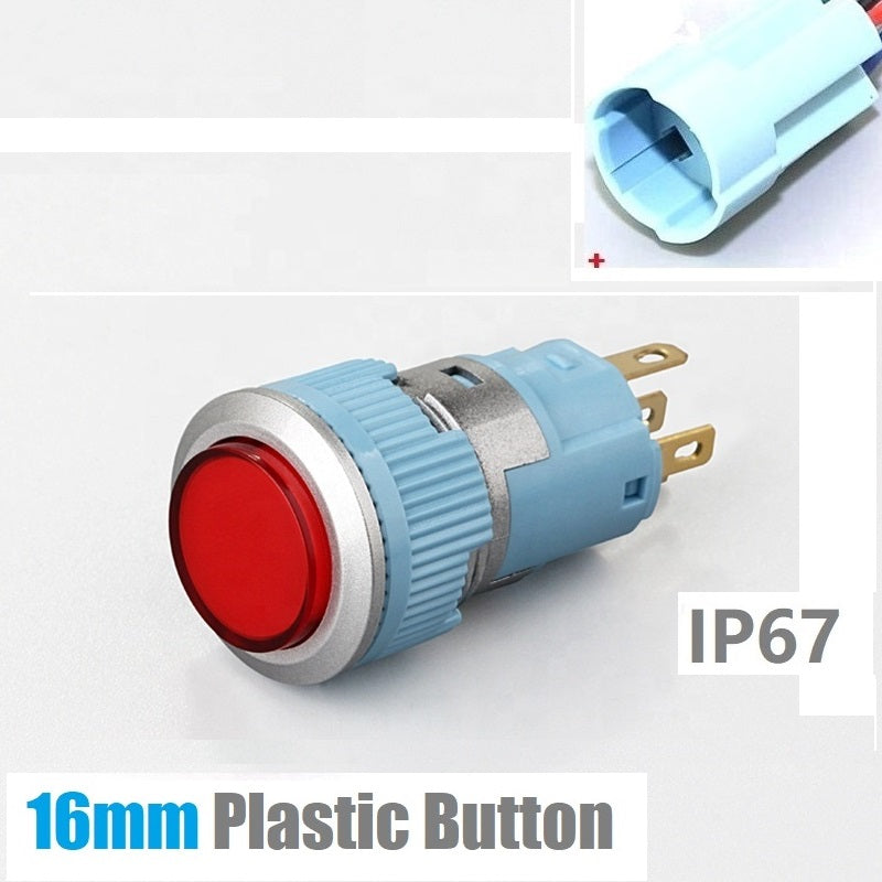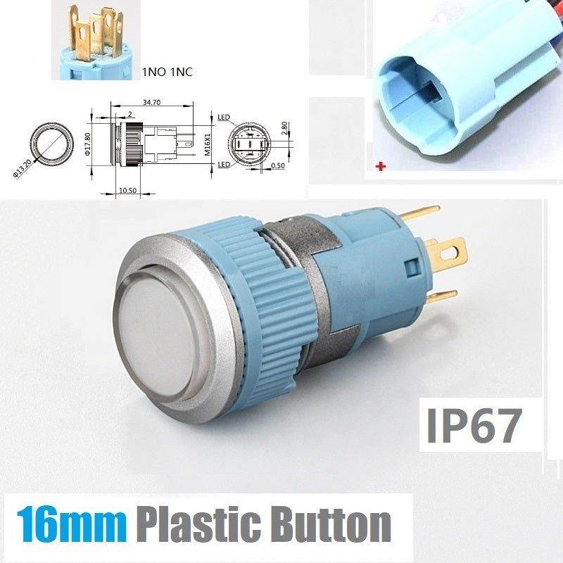 16mm Silver Plastic Waterproof 1NO 1NC 3A High Head+Round LED push button switch