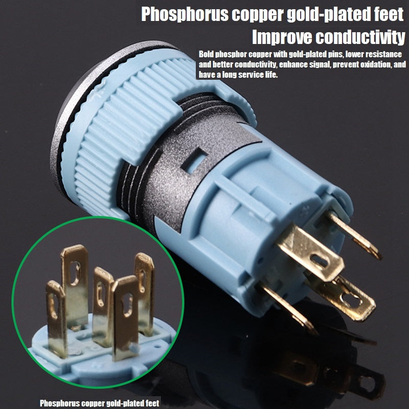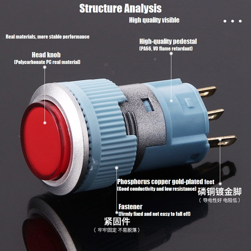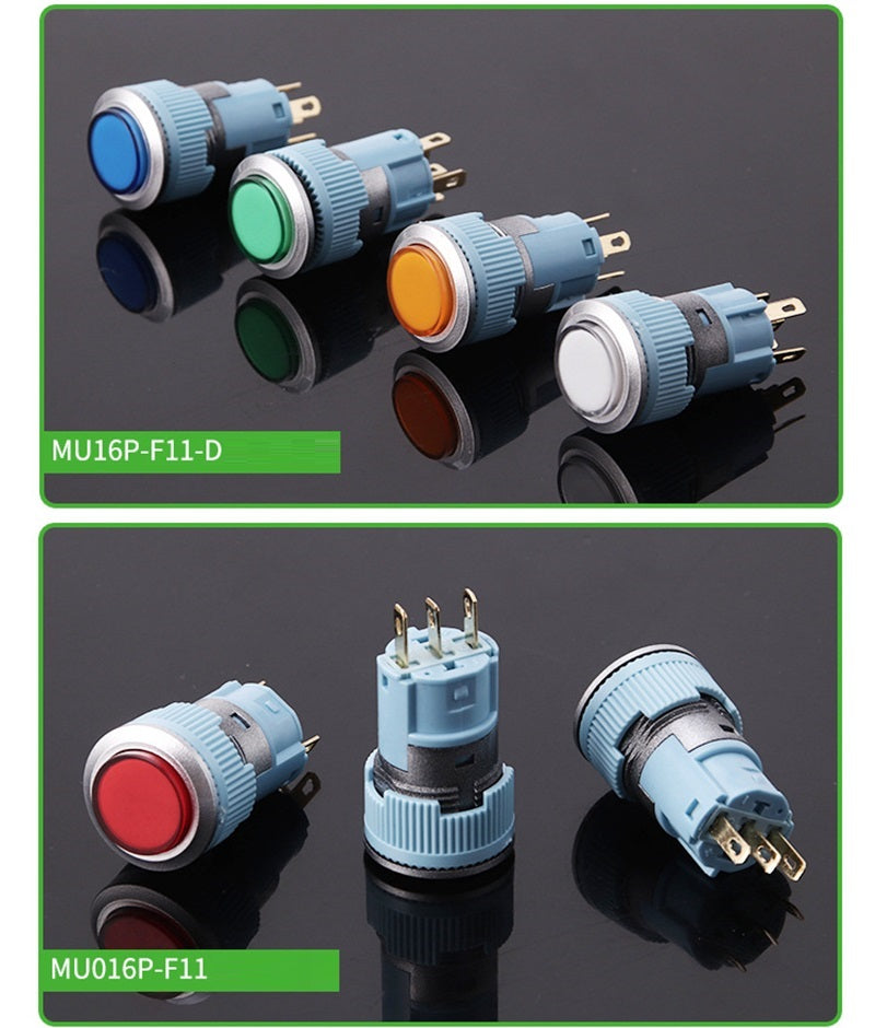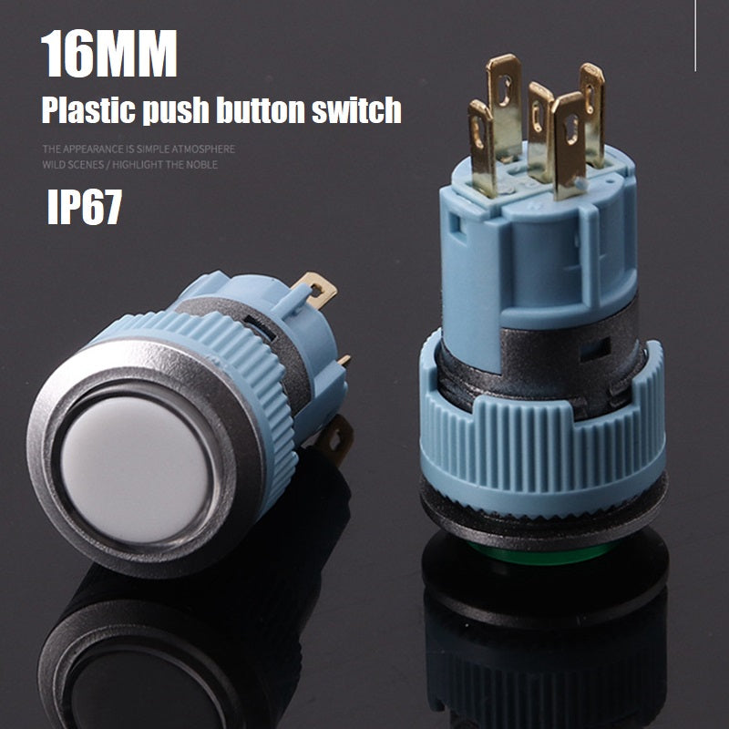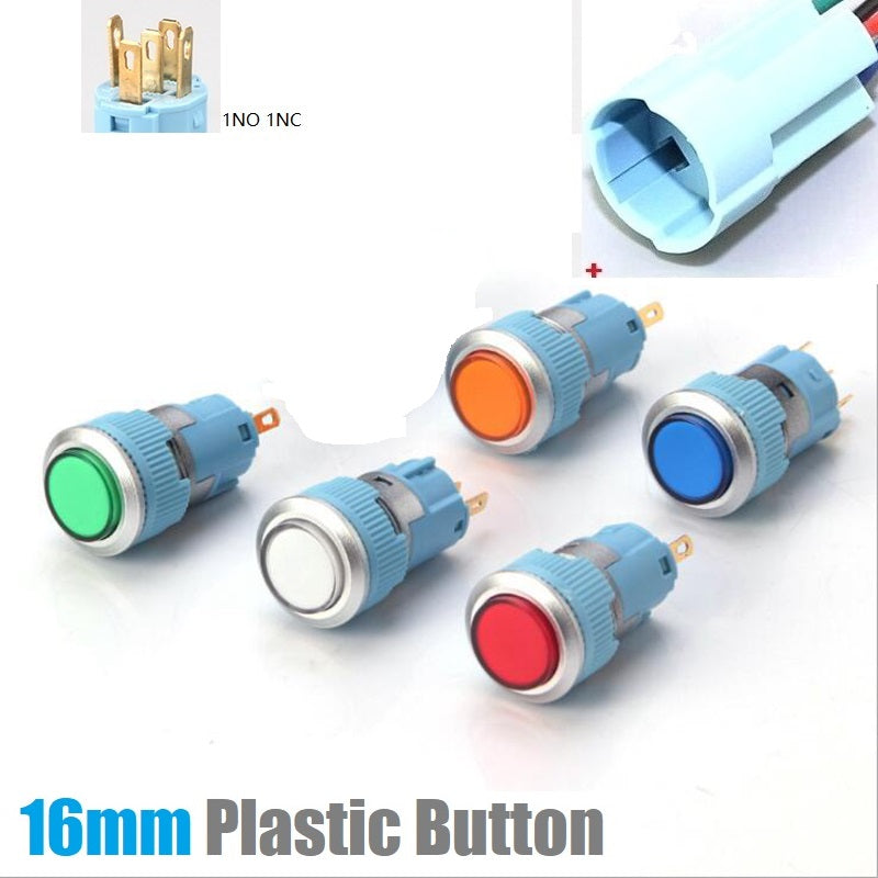 16mm Silver Plastic Waterproof 1NO 1NC 3A High Head+Round LED push button switch