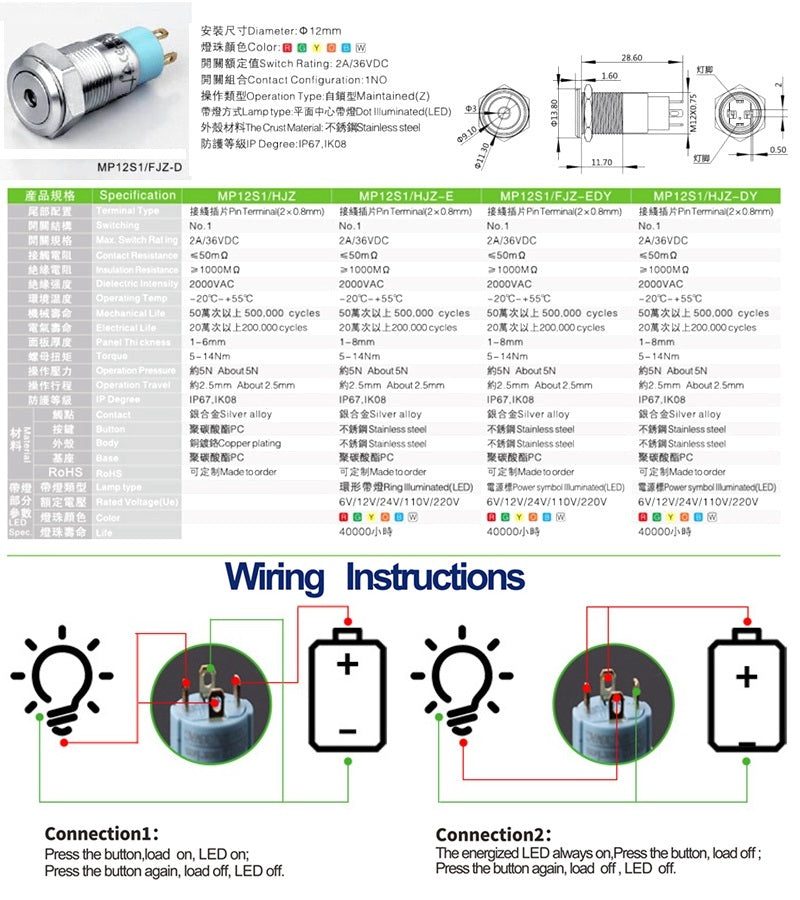| Electrical Life: | Maintained:1000000 Momentary:1000000 Selector:250000 |