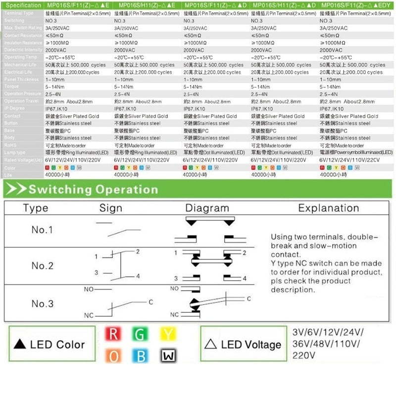 Mechanical Life: Maintained:100,0000 Momentary:100,0000 Selector/Keylock:250000