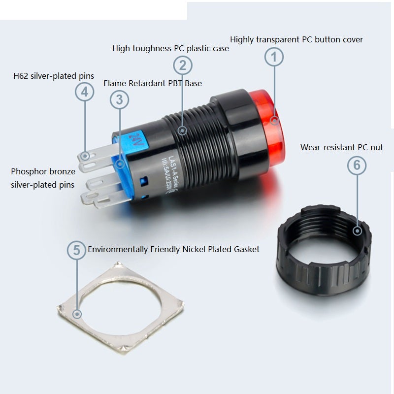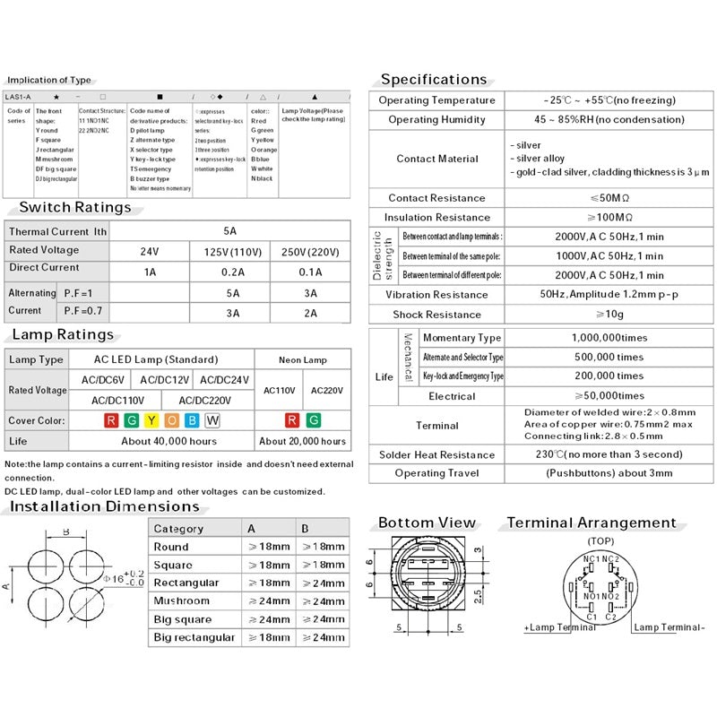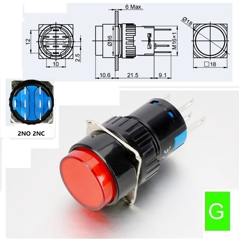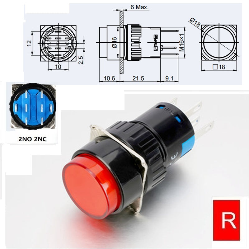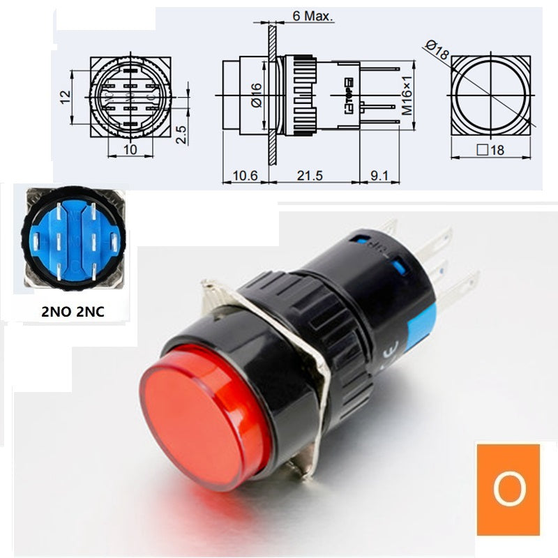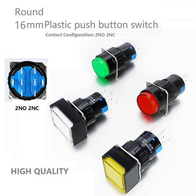 16mm DPDT Illuminated ON/OFF Round Plastic Push Button Switch (LAS1-AY)