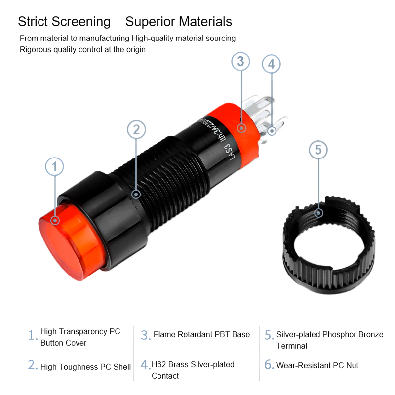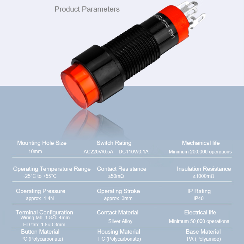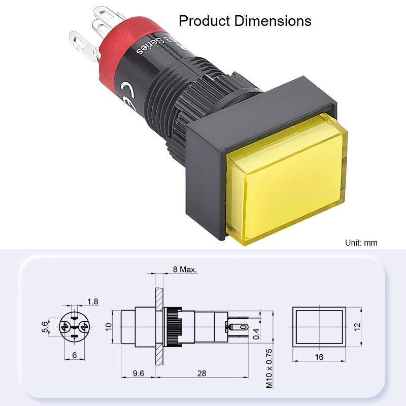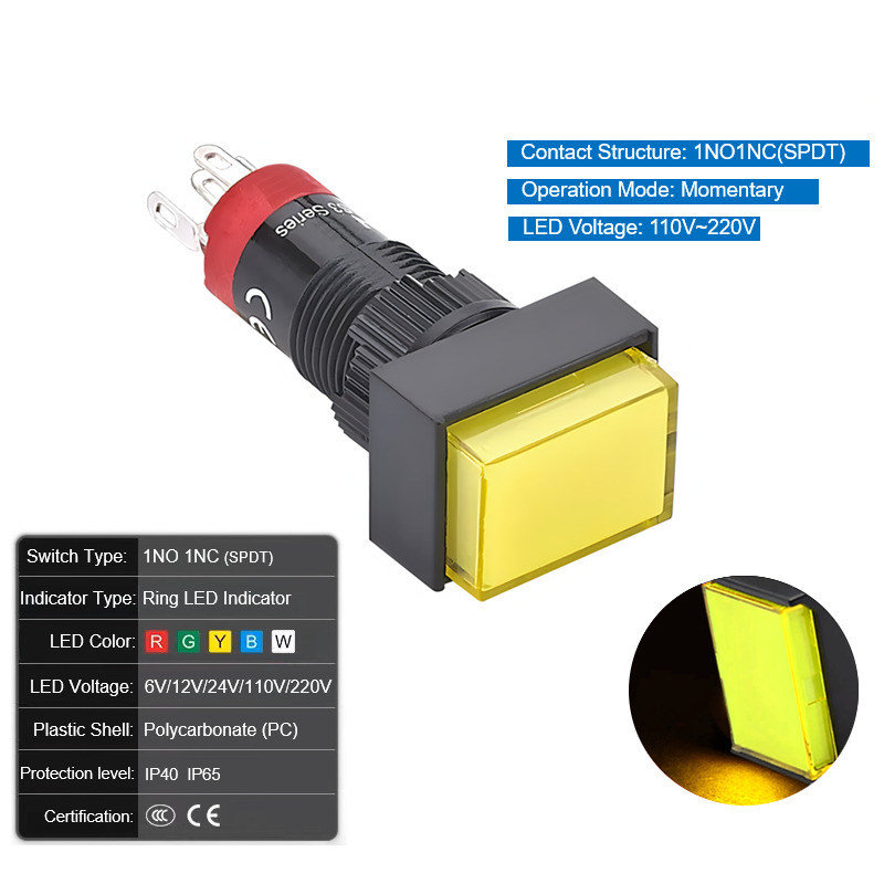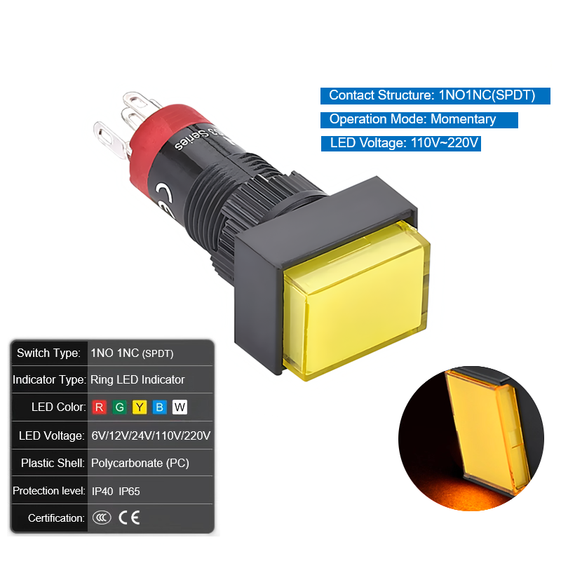 10mm SPDT Waterproof Illuminated Push Button Switch Rectangular Plastic Mini Power Switch
