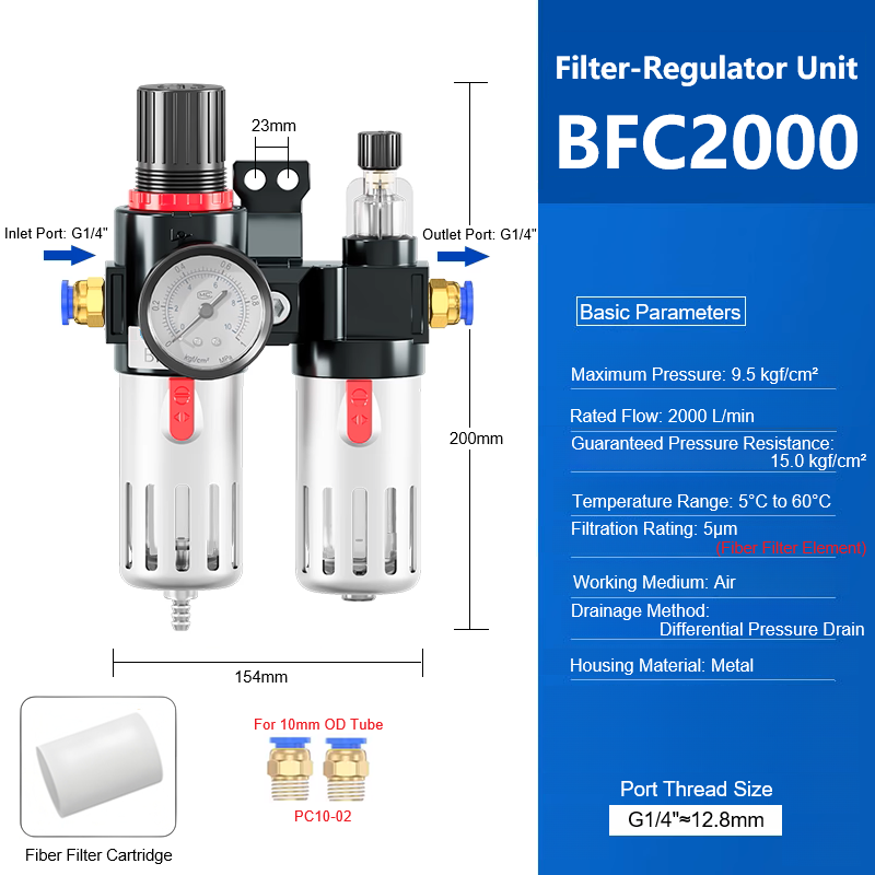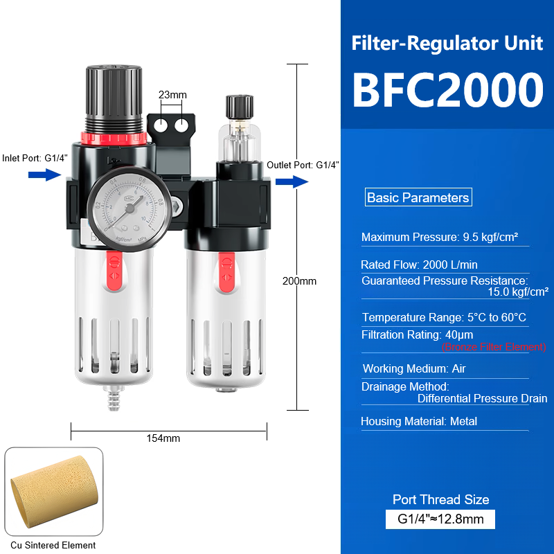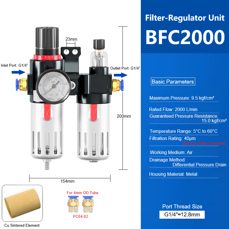 BFC2000 2-Stage FRL System-Ideal for CNC Machines & Sandblasters with Moisture Trap