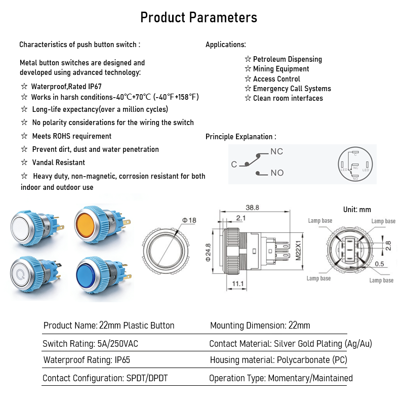 | Operation Type: | Momentary or latching(self-locking) |