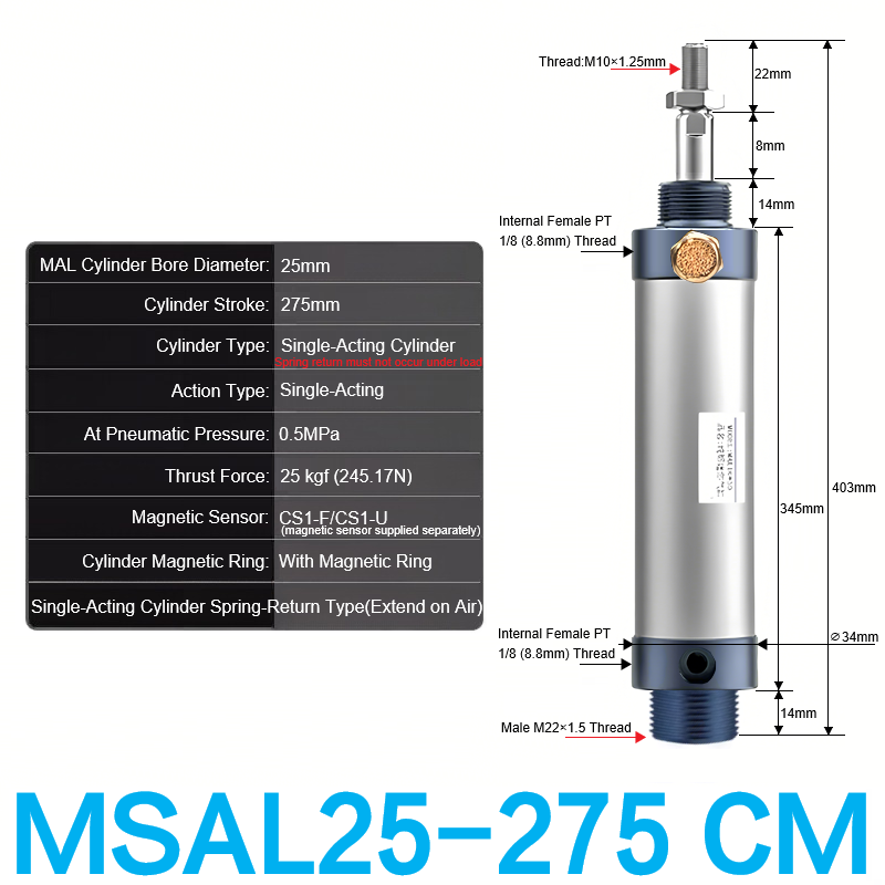 • Type: ‌MSAL Pneumatic Cylinder