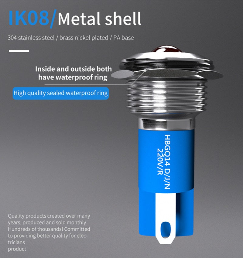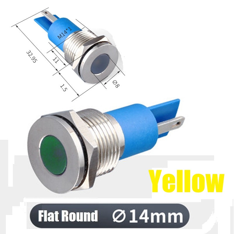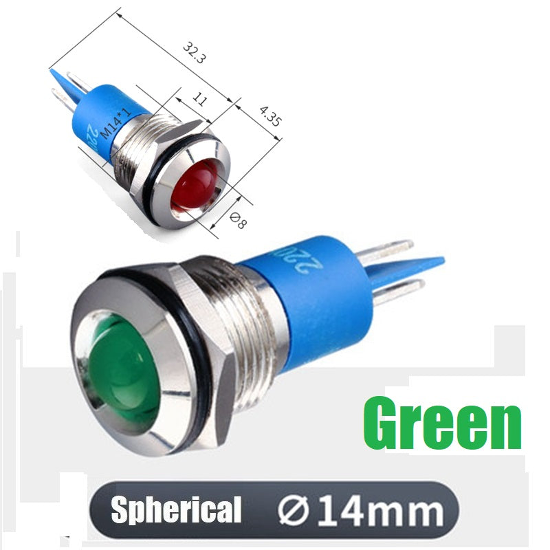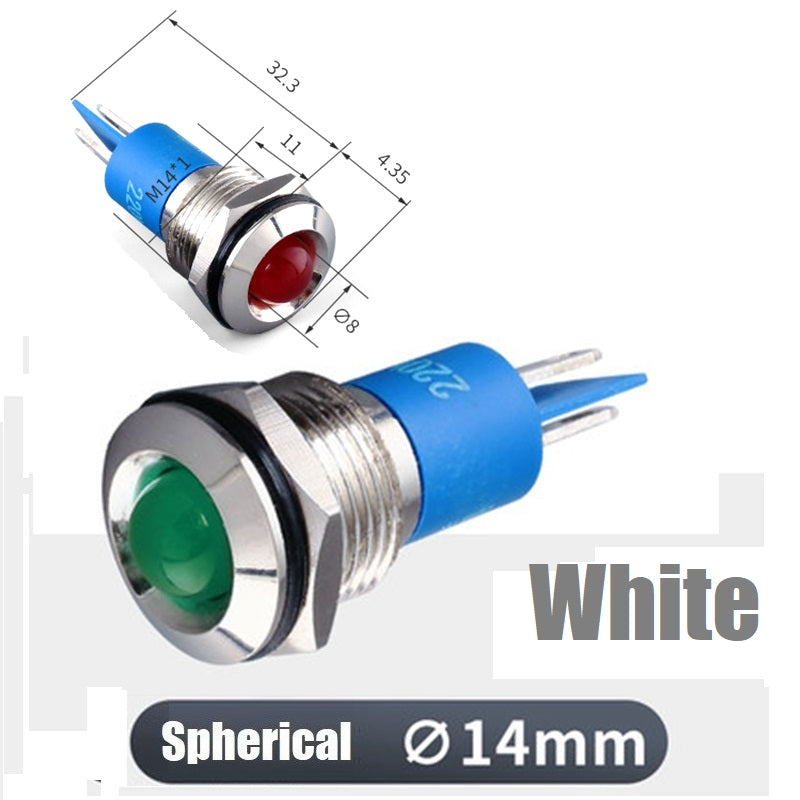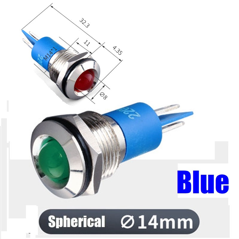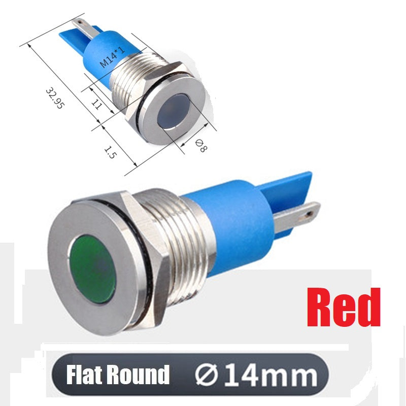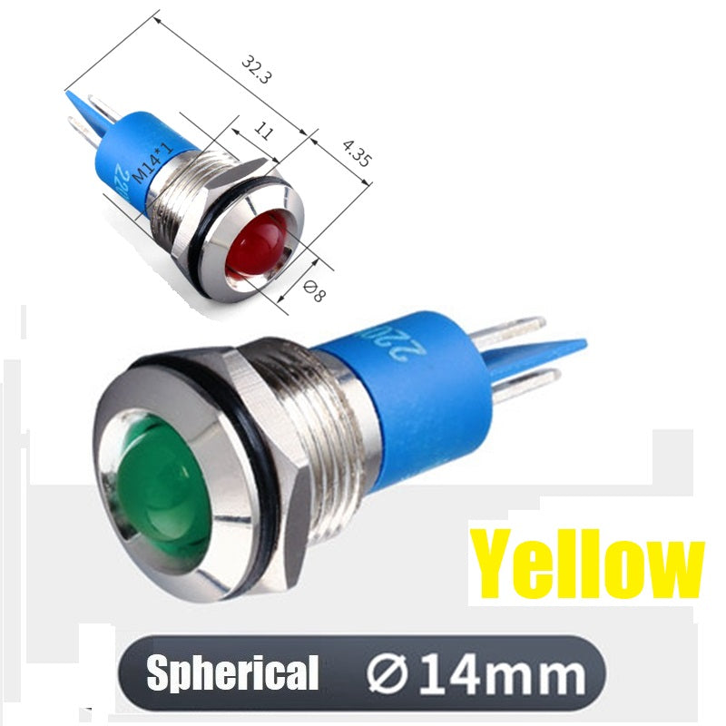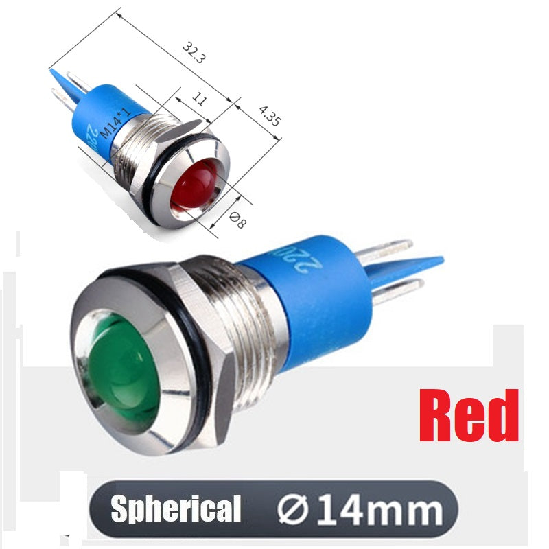 14mm Stainless steel Led signal lamp Pins terminal Metal Waterproof IP67 indicator lights Dome head 12V