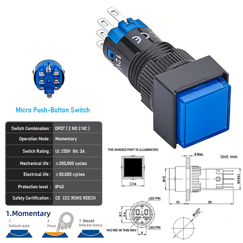 | Contact Structure: | 1NO 1NC (SPDT) 2NO 2NC (DPDT) |