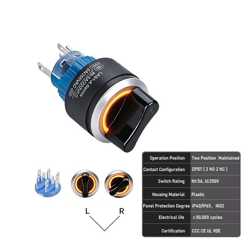 ‌22mm Round Silver Panel Ring LED SPDT Rotary Knob Switch 5A 250V Equipment Power On/Off Control CE ROHS