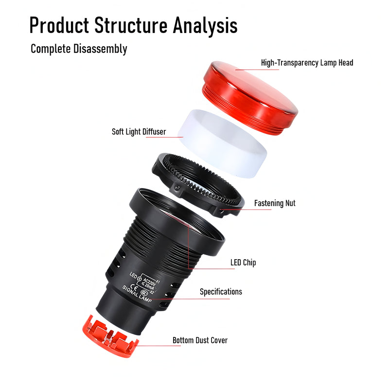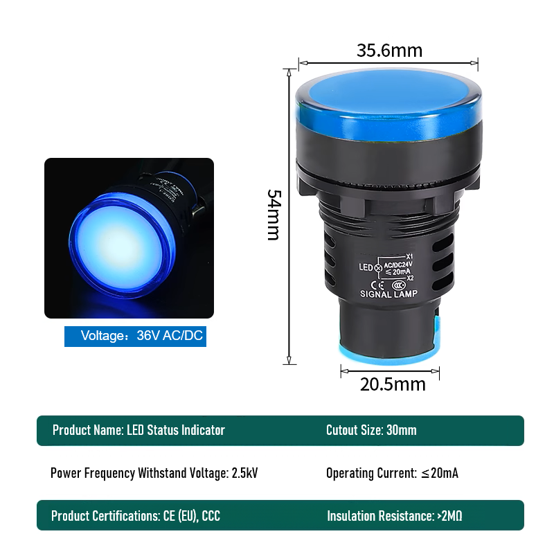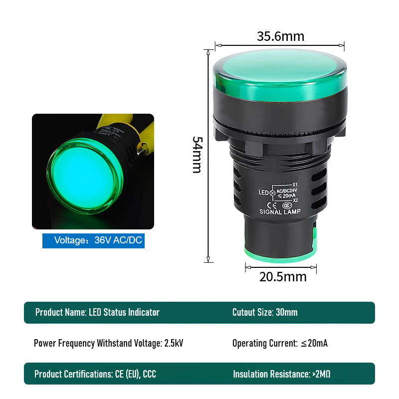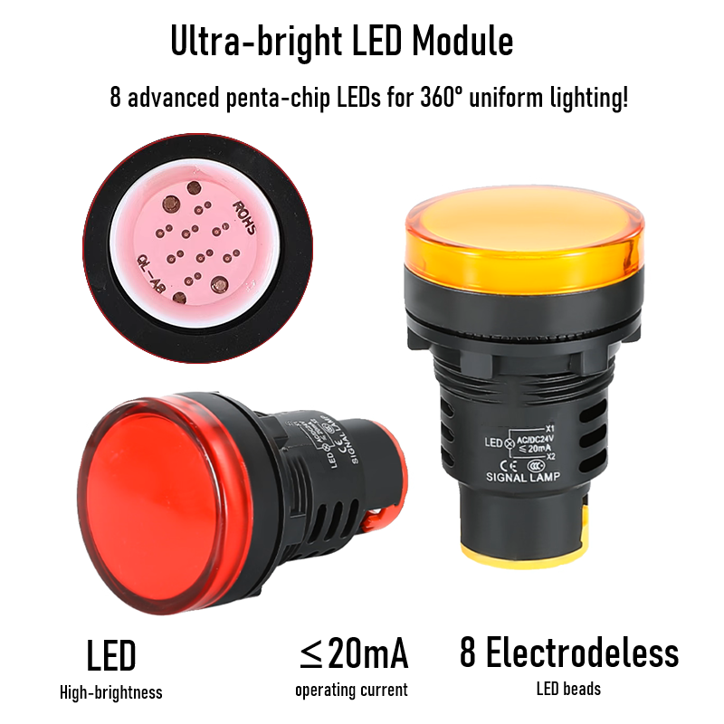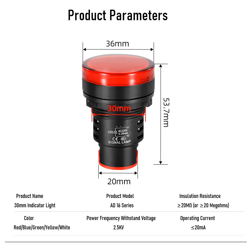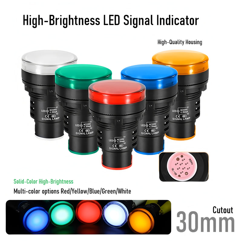 Industrial Equipment LED Signal Light - AD16 Series 30mm 12V-220V Panel Mount Indicator (5 Colors)