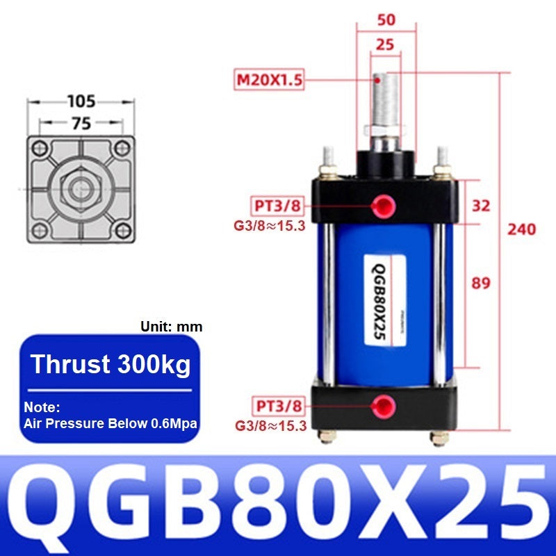 QGB Cast Iron Heavy-Duty Double-Action Cylinder High Thrust Standard Cylinder Bore-80 Stroke-25