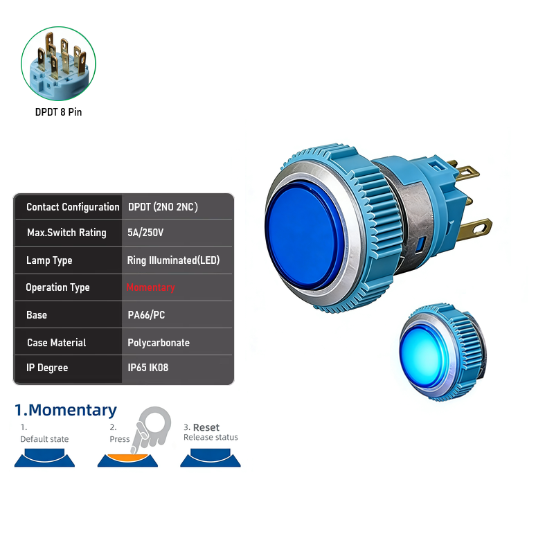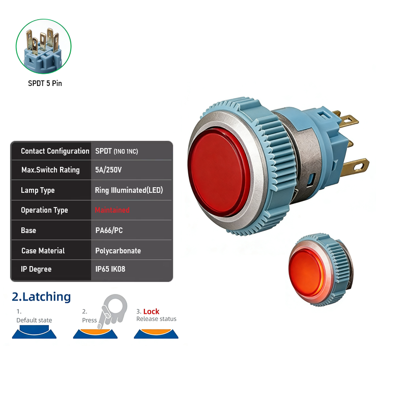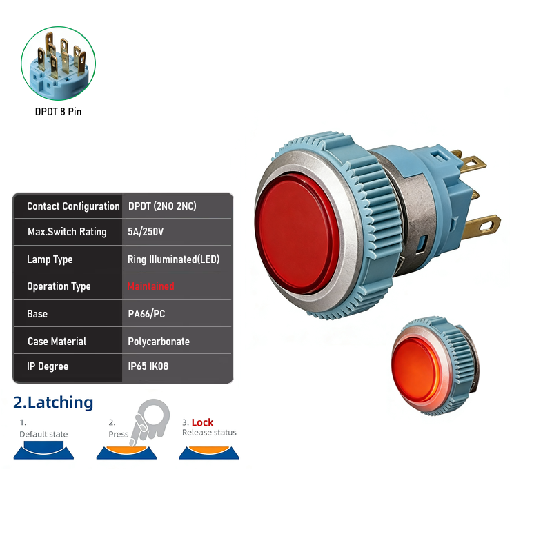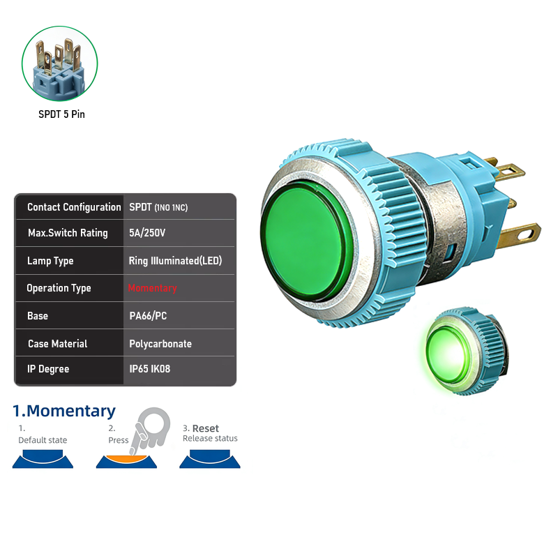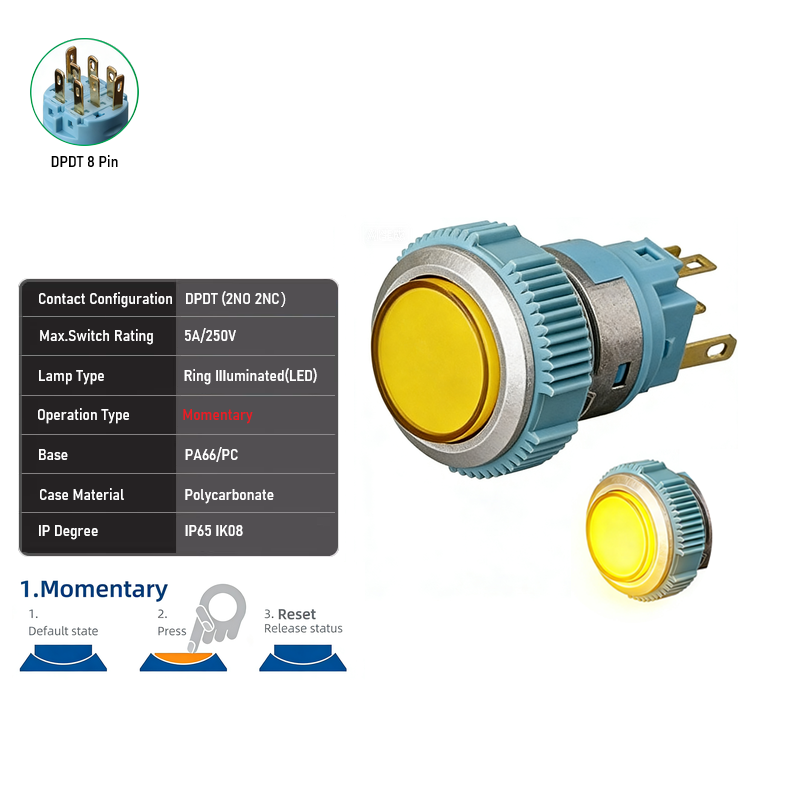 Mechanical Life: Maintained:100,0000 Momentary:100,0000 Selector/Keylock:250000