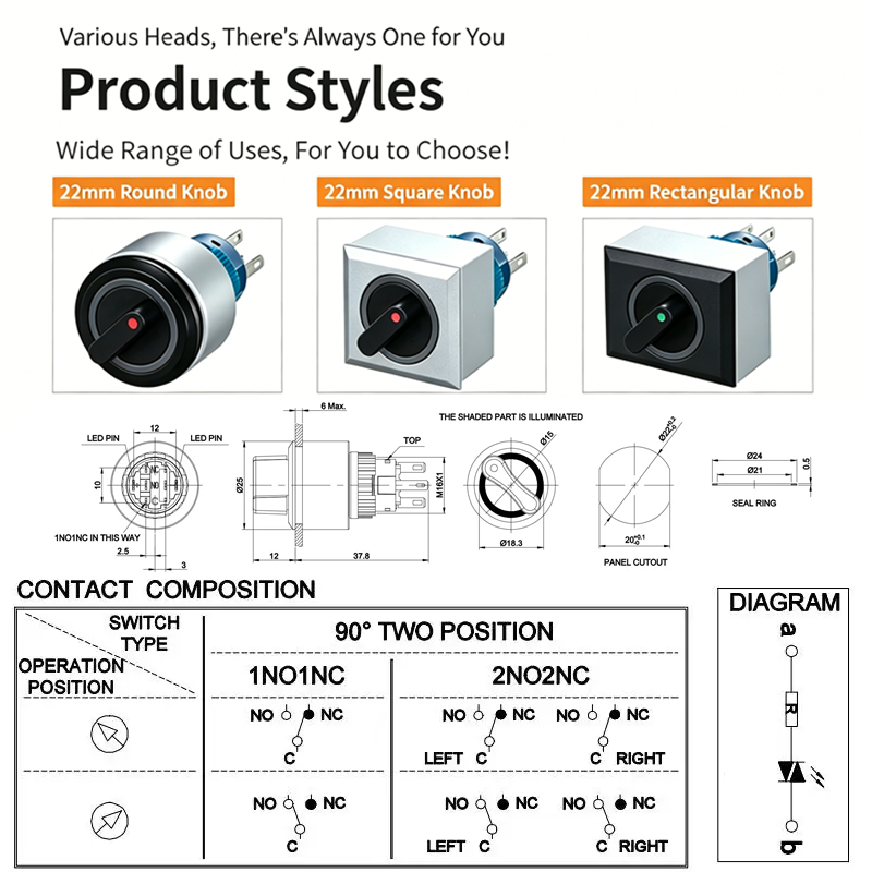 Switch Combination: 1 NO 1 NC, 2 NO 2 NC