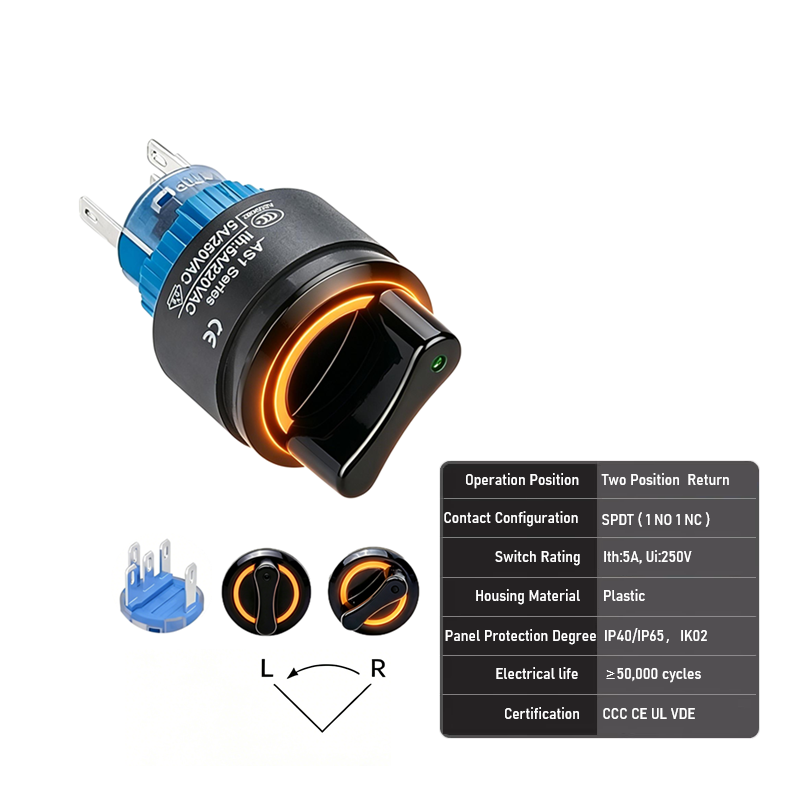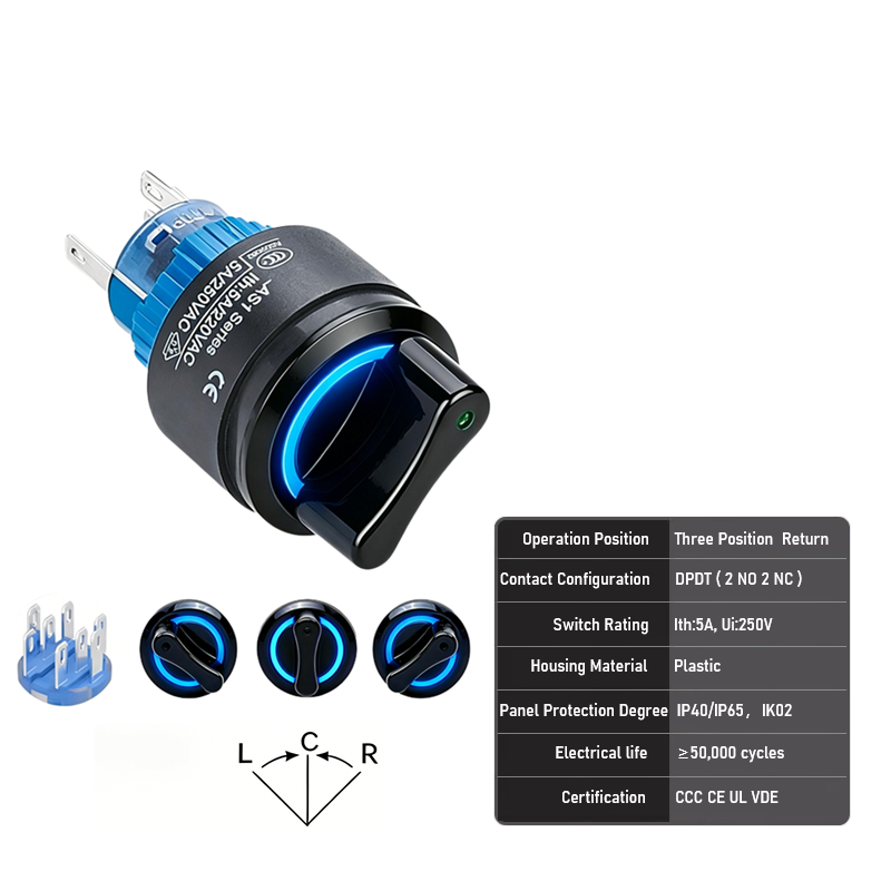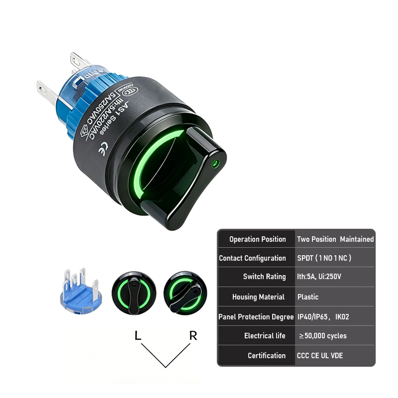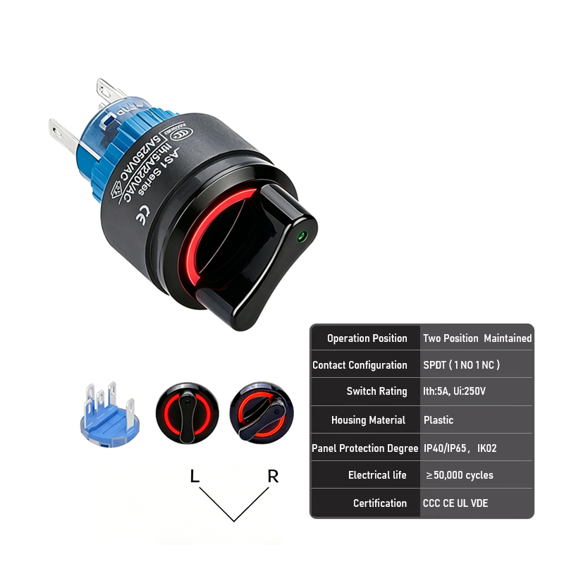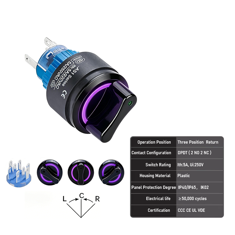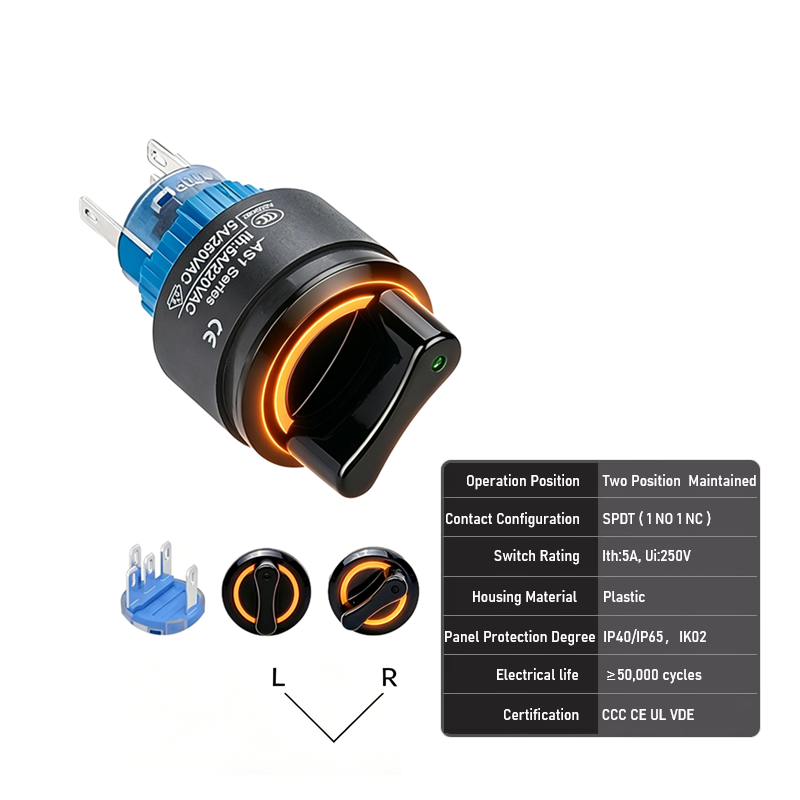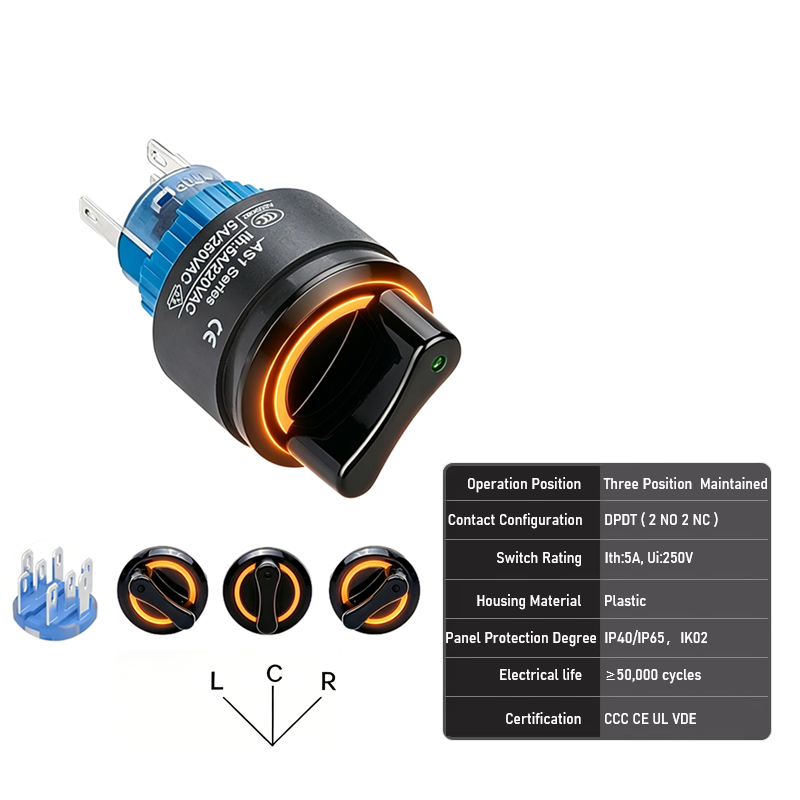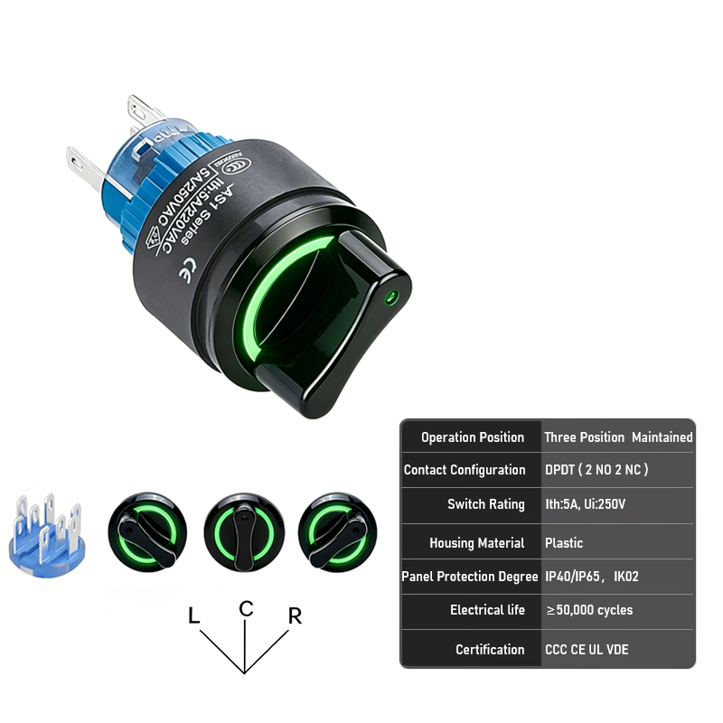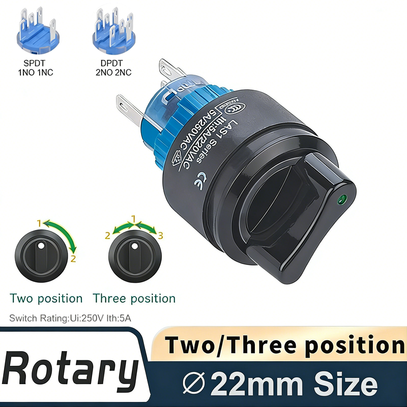‌22mm Round Black Panel Ring LED SPDT Rotary Knob Switch 5A 250V Equipment Power On/Off Control
