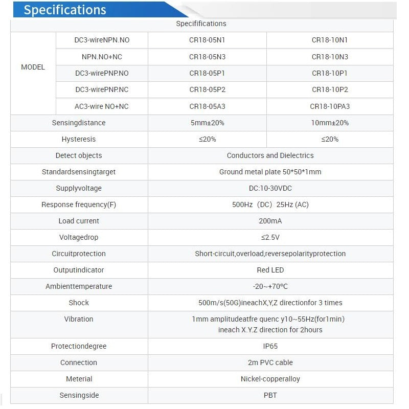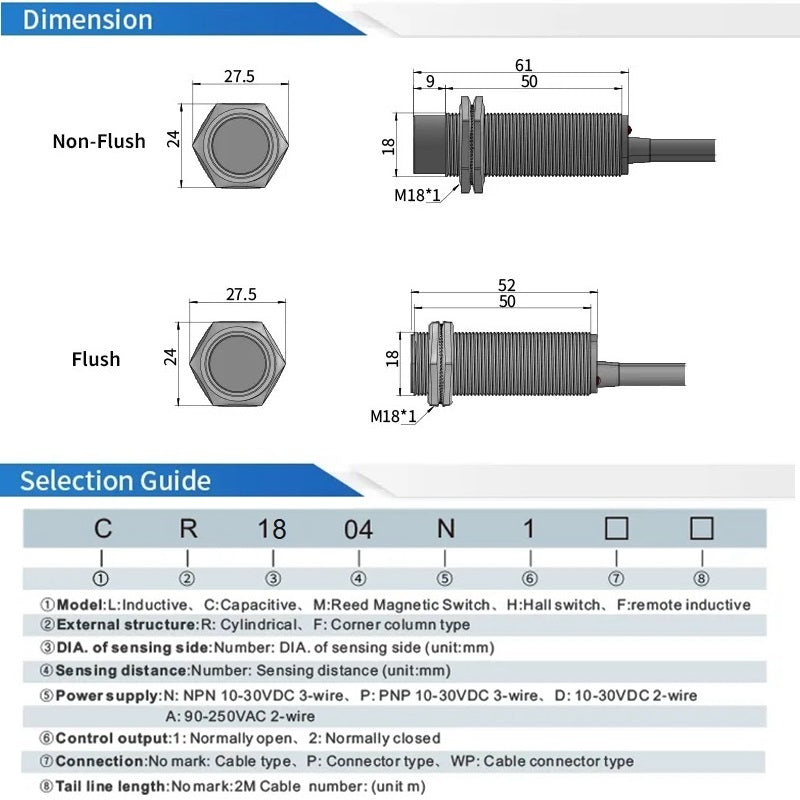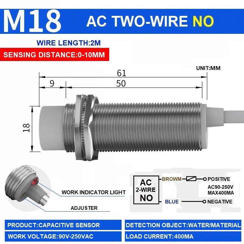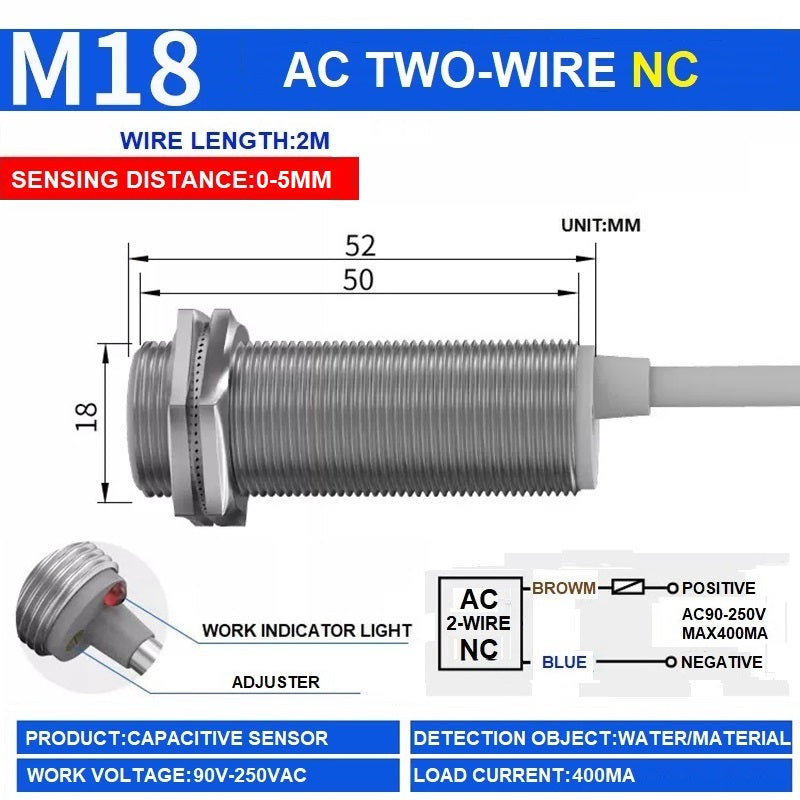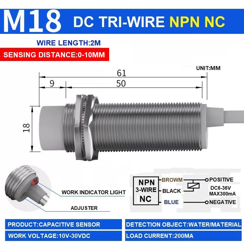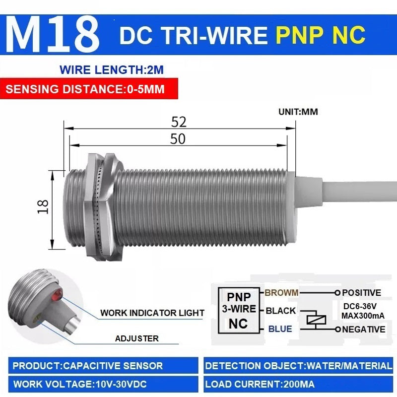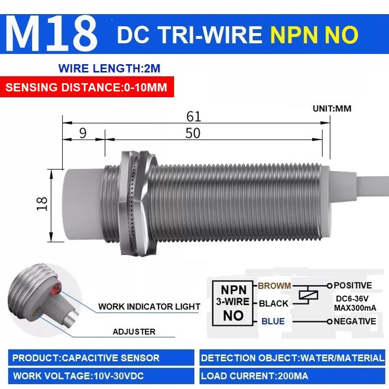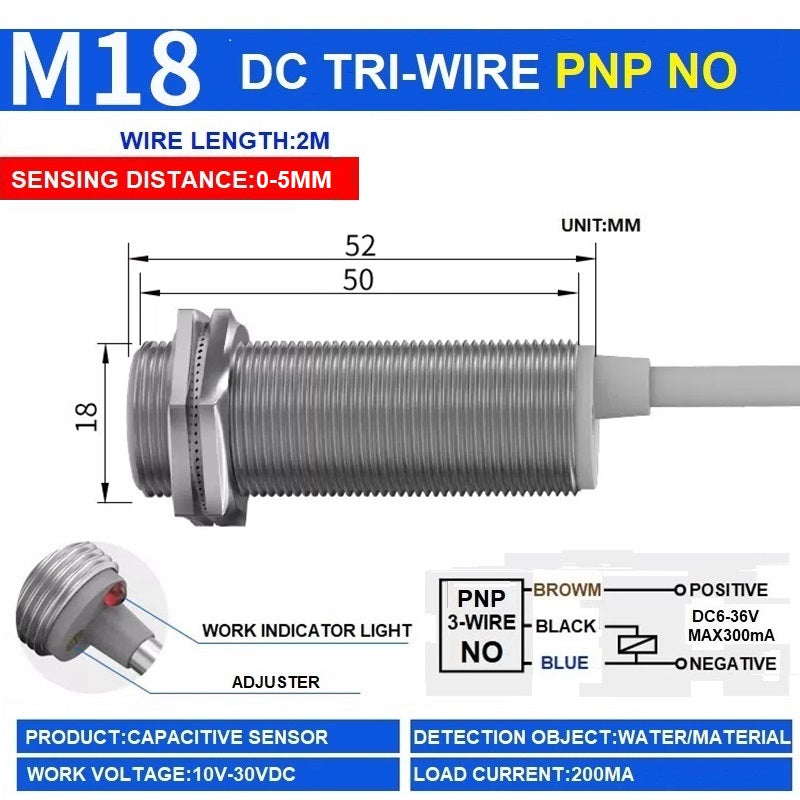 Capacitive Proximity Switch M18 24V Capacitor Proximity Sensor Non-Metal Counter