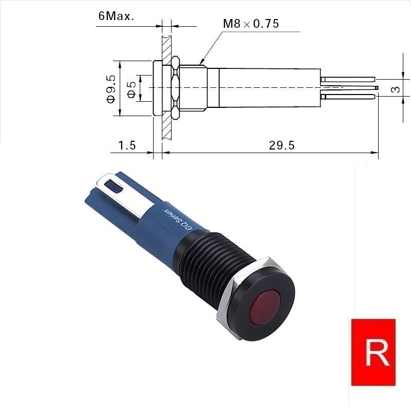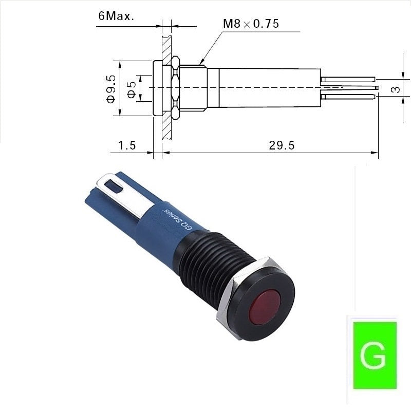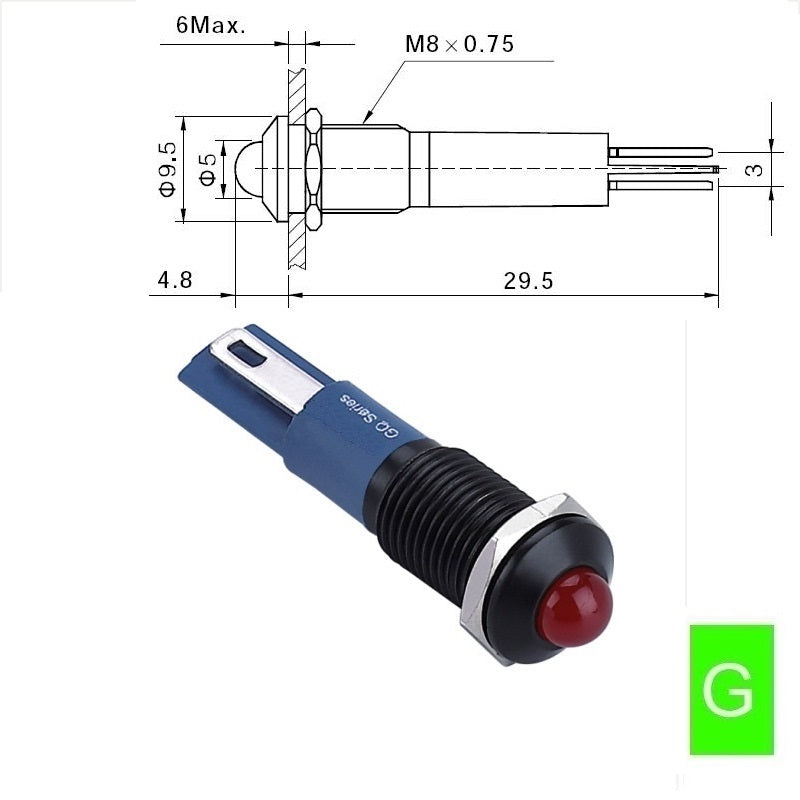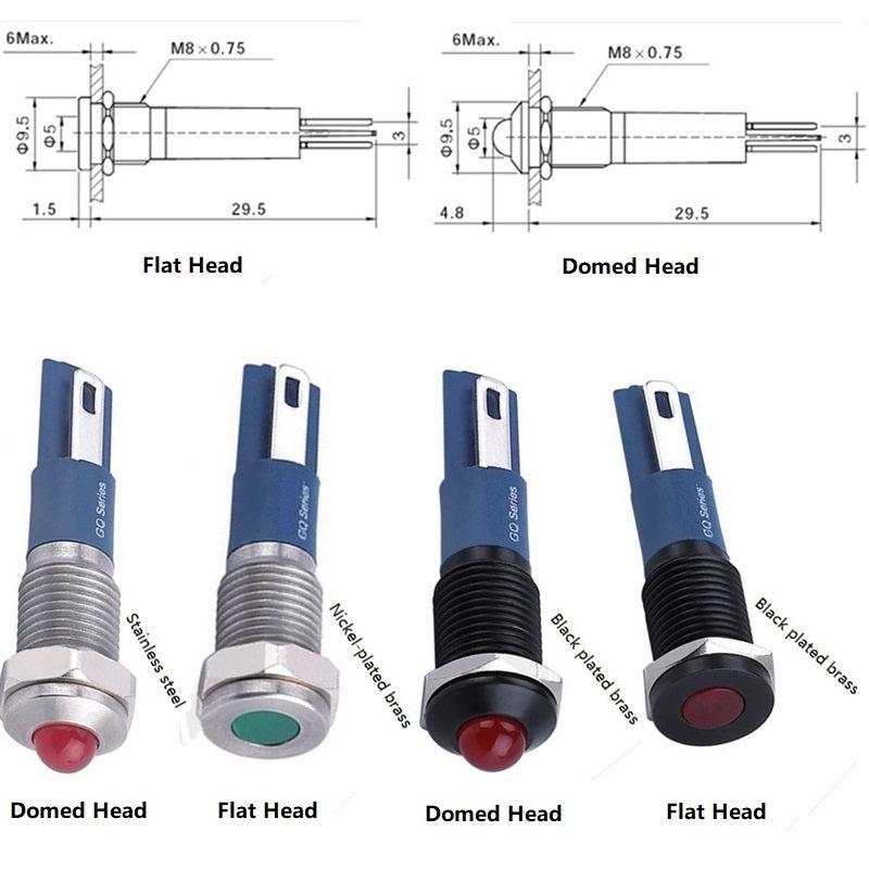 | Head shape: | Flat head/Domed Dot LED |