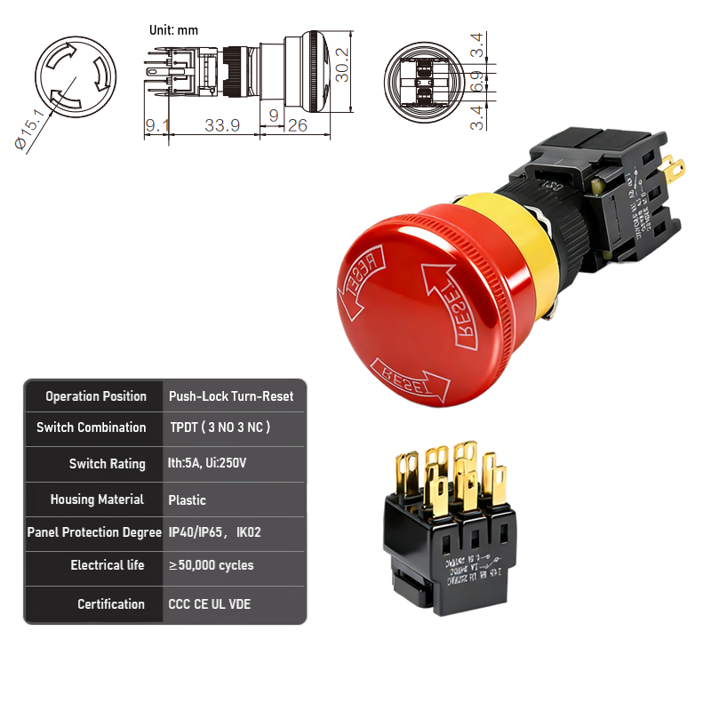 Head Type: 16mm Emergency Stop Switch