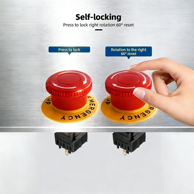 16mm DPDT Emergency Stop Button Switch 5A/250V Safety Lock Anti-Mistake Push Button for Industrial Equipment Power Cutoff