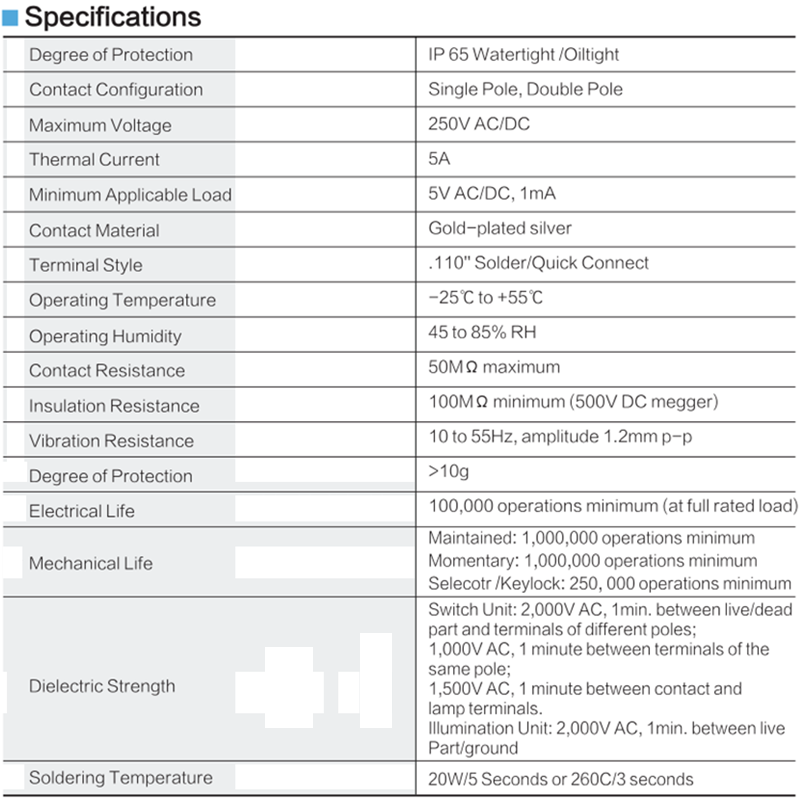 | Electrical Life: | >50,000cycles |