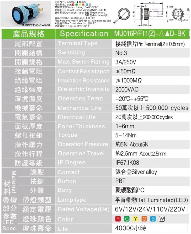 | Model Number: | MU016P/F11-E |