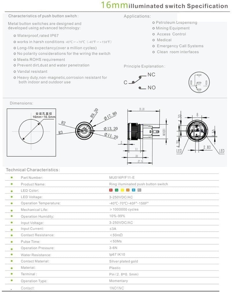 | Panel Cutout Size: | 16mm |