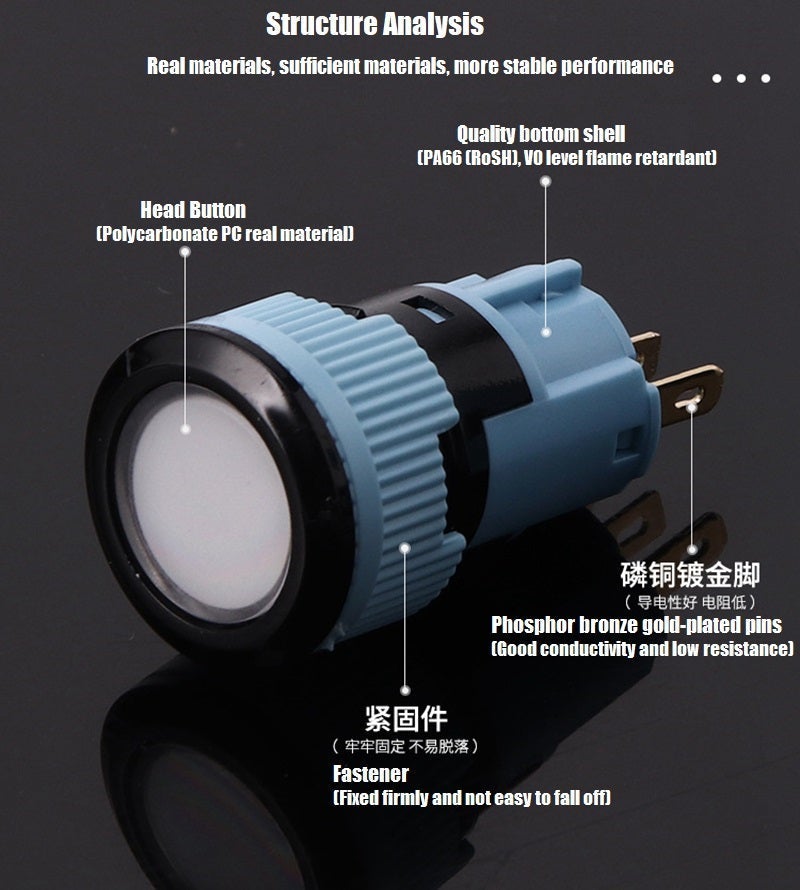 | Product name: | LED light plastic momentary push button switch |