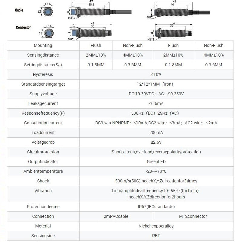 | Series: | M12 Series inductive proximity switch sensor |