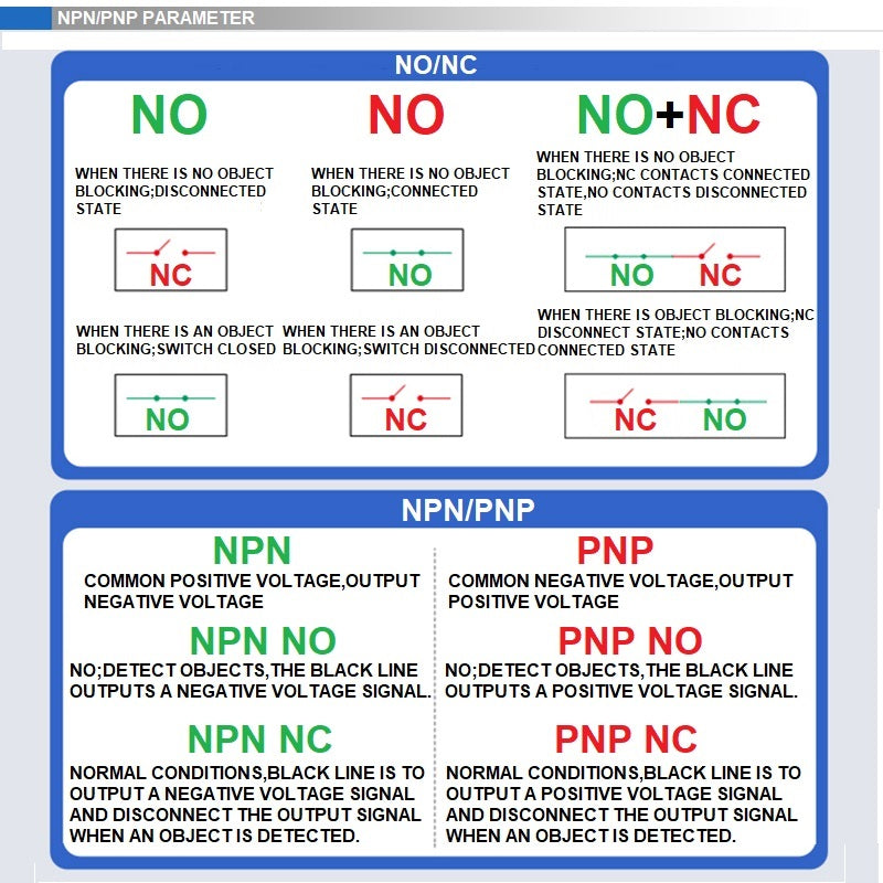 | Output: | NPN NO/NPN NC/PNP NO/PNP NC |