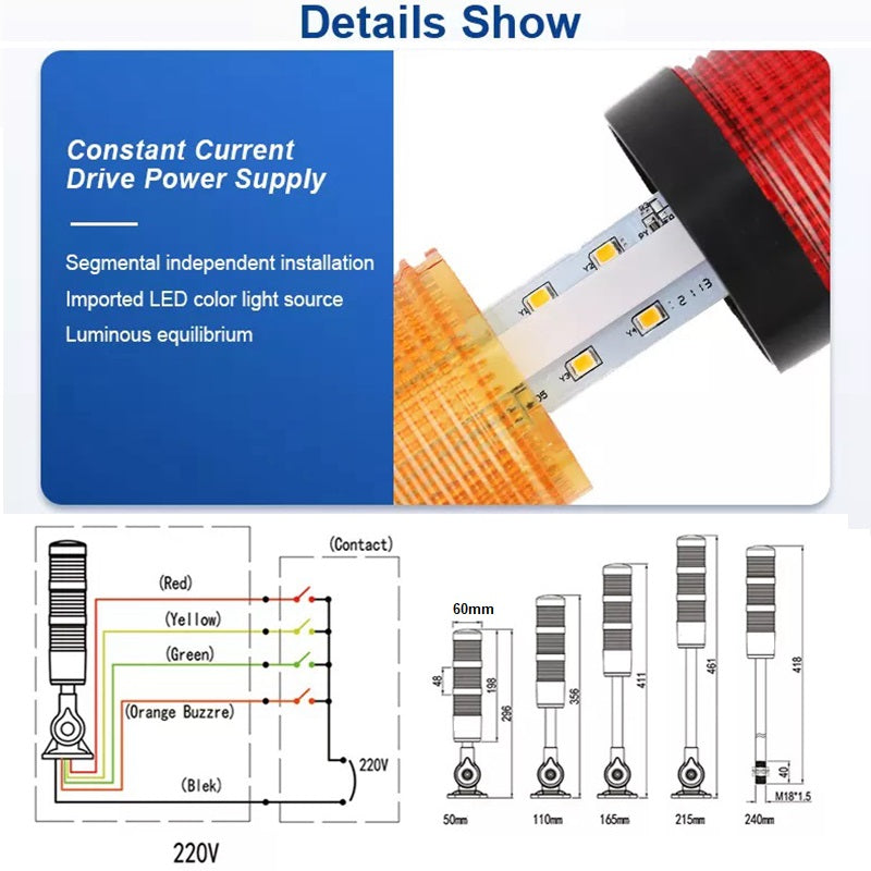 Dia 60MM LED Signal Warning light CNC Tri-layer Tri-Color light lathe Tower light