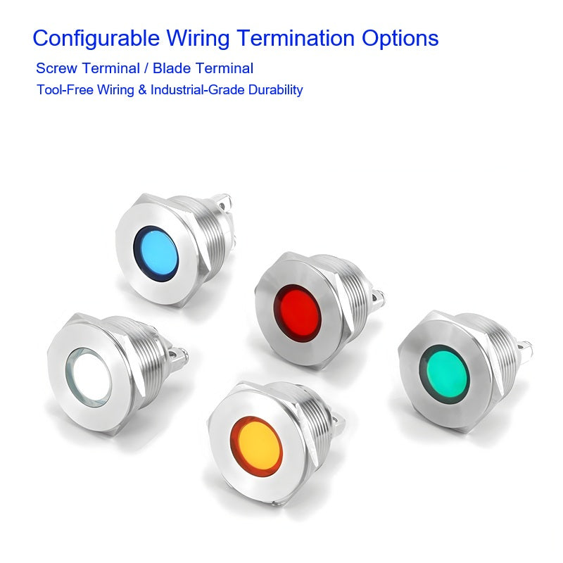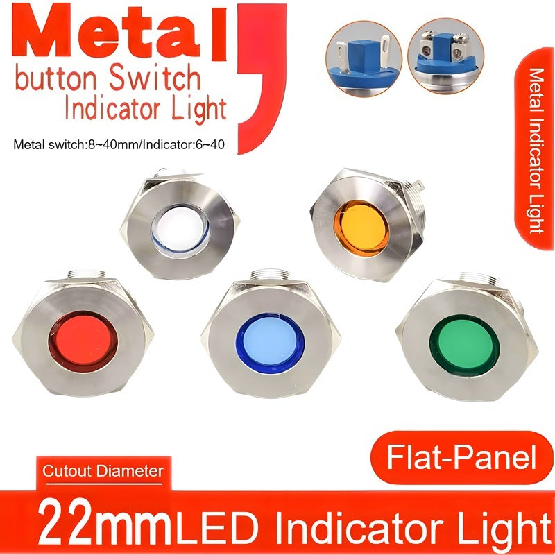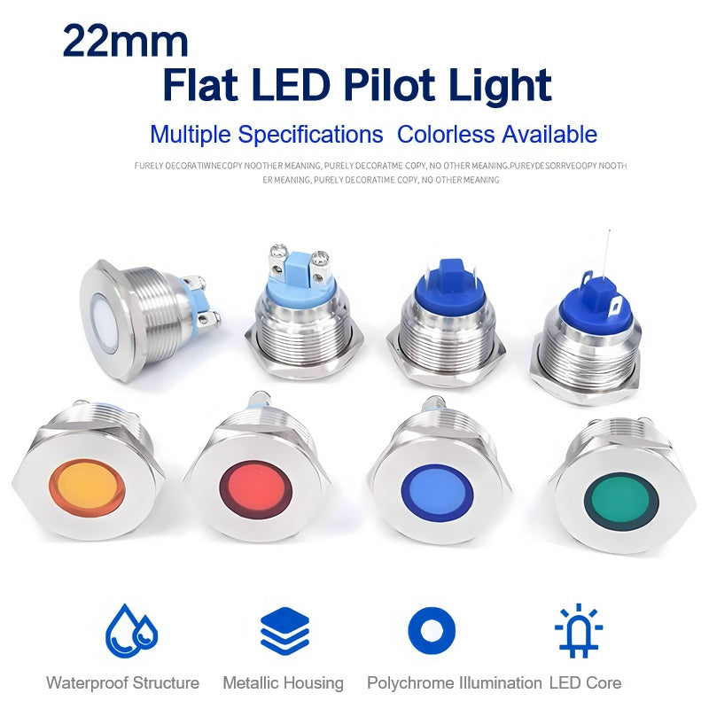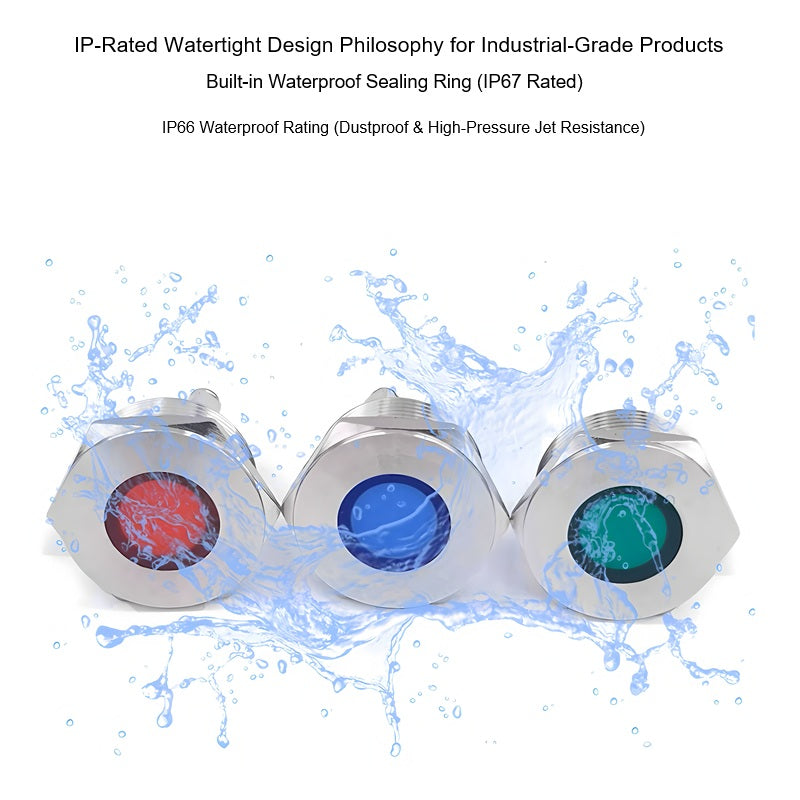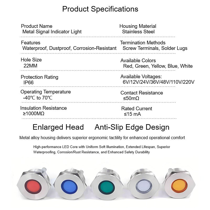 Industrial Waterproof Signal Lamp - 22mm 304 SS Metal Housing Wide Voltage(6-220V) LED