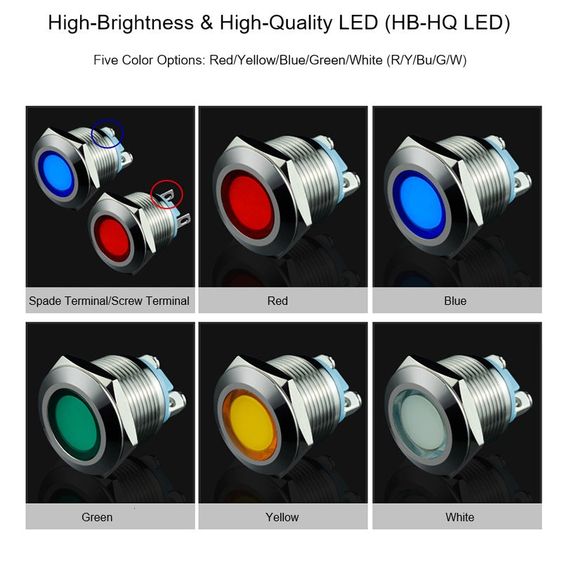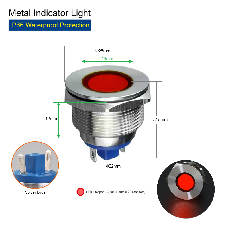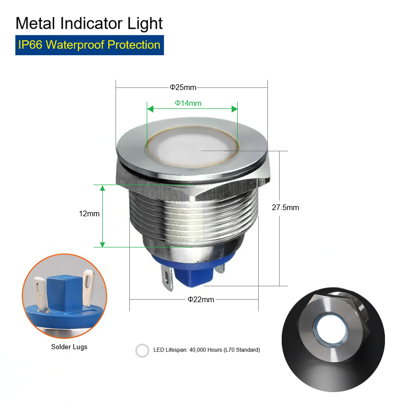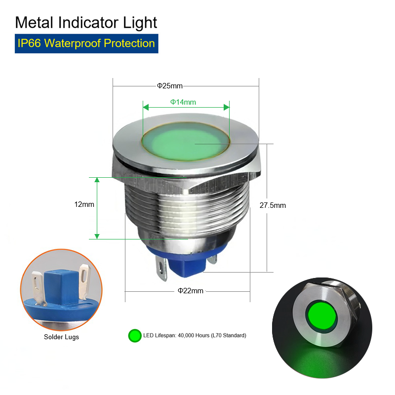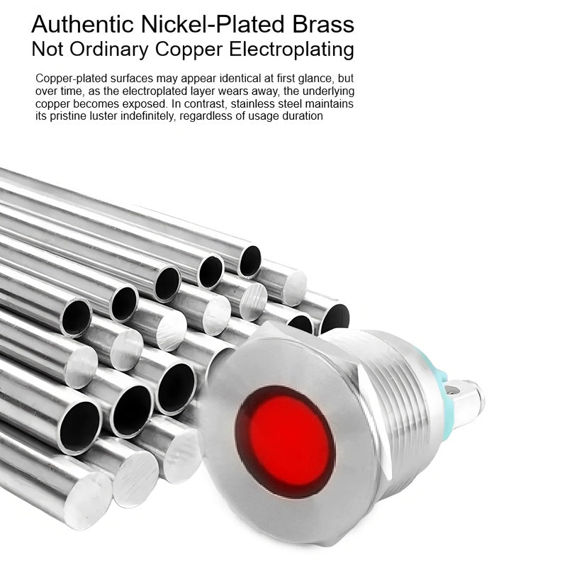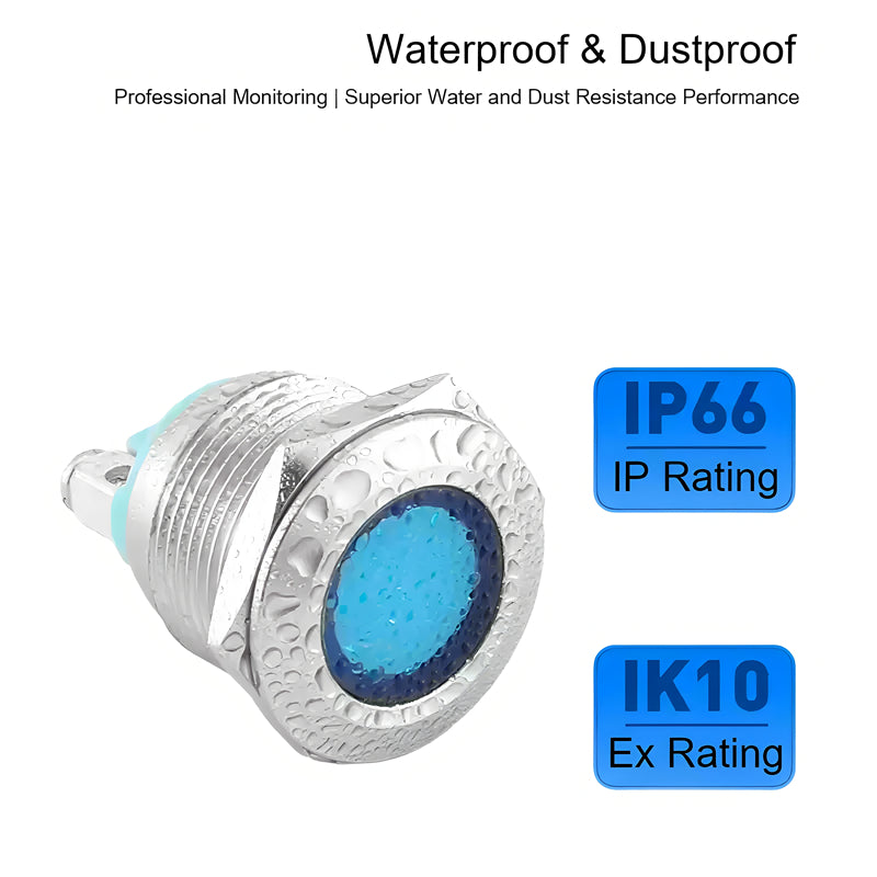 Industrial Waterproof Signal Lamp - 22mm 304 SS Metal Housing Wide Voltage(6-220V) LED