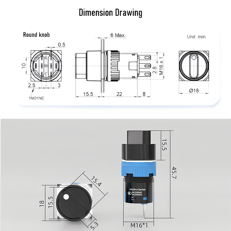 • Type: 16mm Keyed Rotary Switches Knob Control