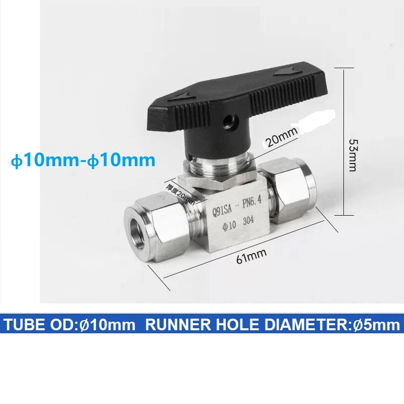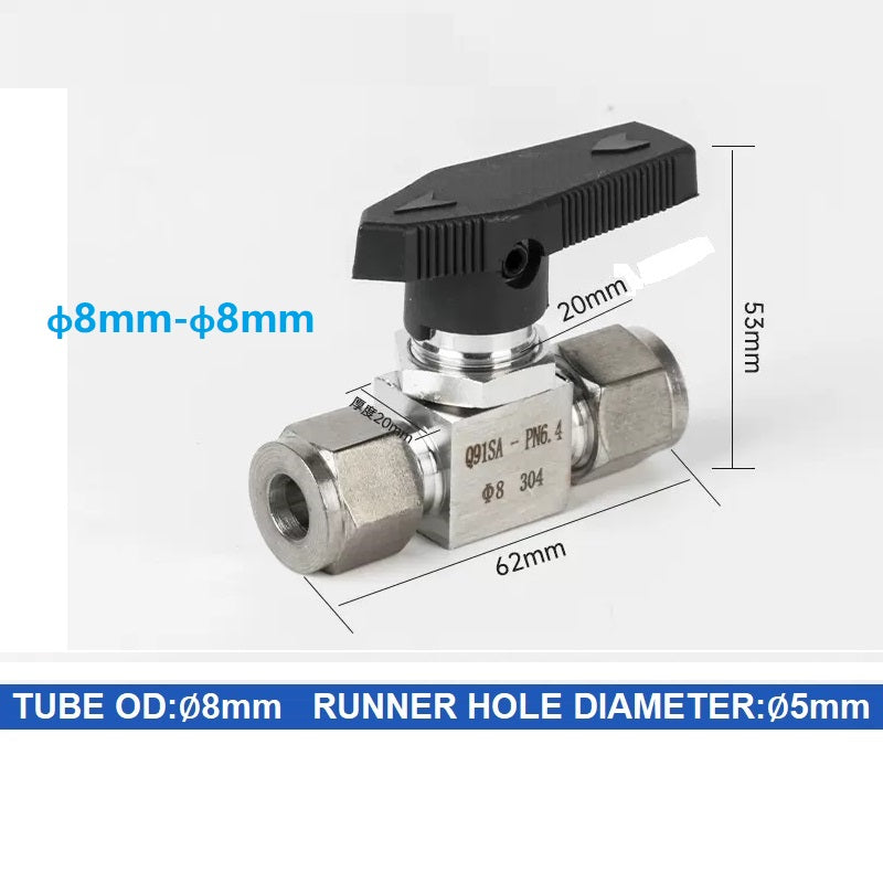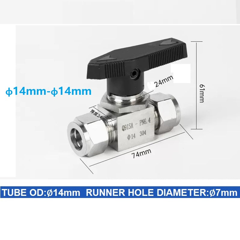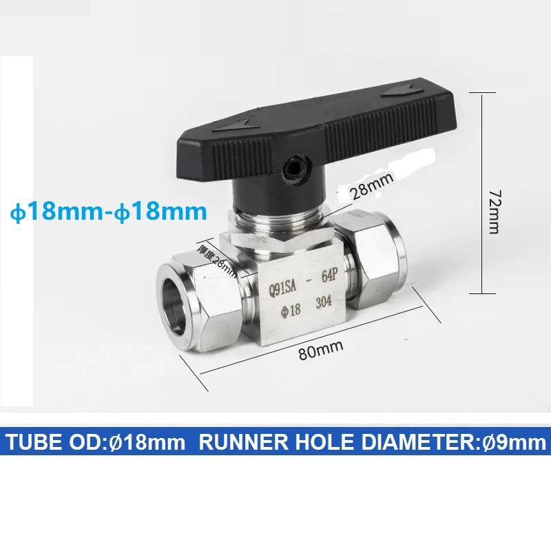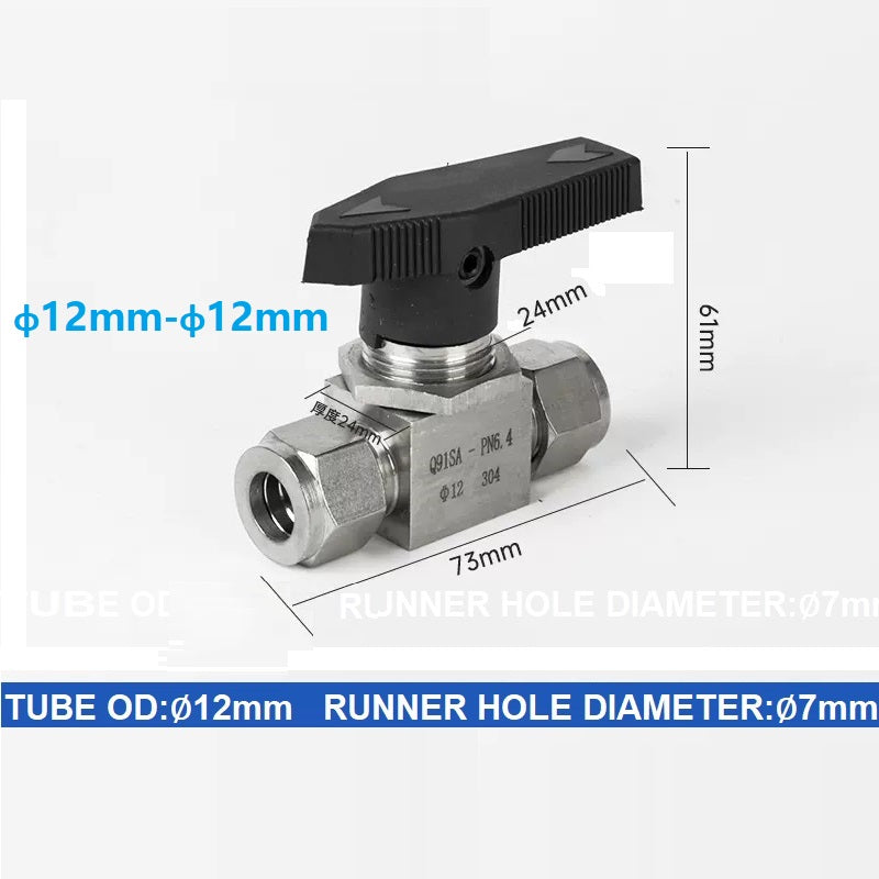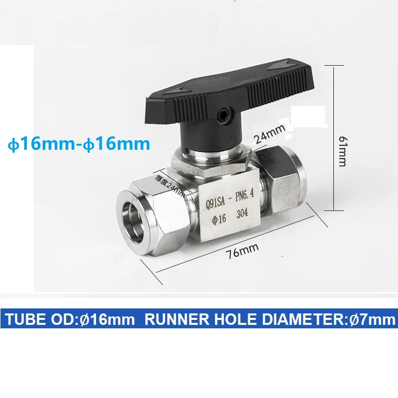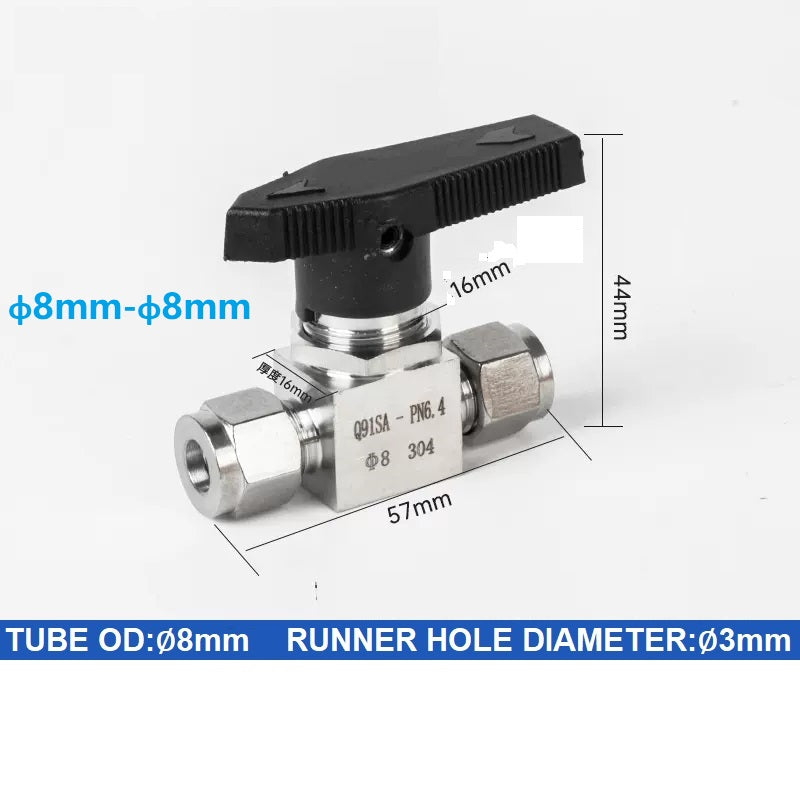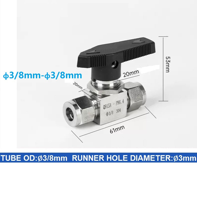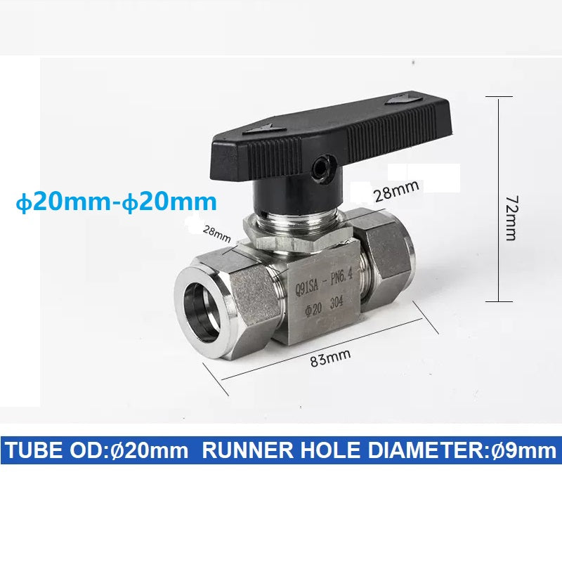304 Stainless steel Card Sleeve Ball Valve Q91SA PN6.4 Straight-Through Panel Instrument Gas Source Switch Ring Ball Valve